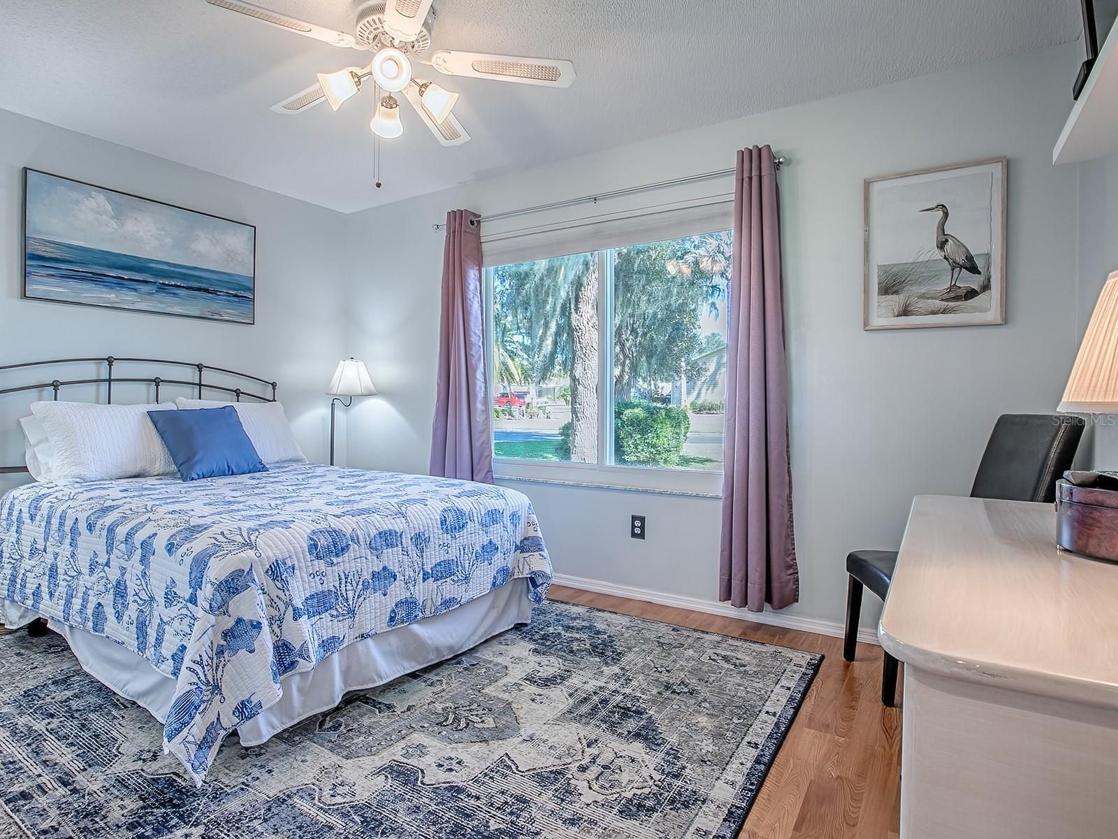 - Ceiling Fan(s), Eat-in Kitchen, Living/Dining Room, Open Floorplan, Main Level Primary, Solid Surface Counters, Split Bedrooms, Walk-In Closet(s), Window Treatments