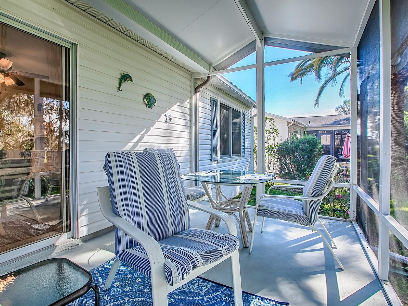 Welcome to Santiago Sanctuary, nestled in the charming Village of Santo Domingo! This beautifully maintained Maverick Model is being offered TURN-KEY and boasts an impressive rental history, making it an exceptional primary residence, seasonal retreat, or investment opportunity. Set against the tranquil backdrop of the Wildlife Preserve, this home offers rear privacy and breathtaking natural views. Inside, the open, split-floor plan is filled with natural light thanks to thoughtfully placed solar tubes and features laminate flooring throughout (no carpet!). The kitchen and baths have been upgraded with granite countertops, providing a stylish and modern touch. The Primary Suite is a peaceful retreat with a large walk-in closet, a picture window framing panoramic Preserve views, and an en-suite bath complete with a walk-in shower. Enjoy Florida living at its finest on the spacious screened-in lanai or the outdoor patio, both overlooking the serene Preserve—perfect for morning coffee, evening sunsets, or wildlife watching. Additional features include: Oversized 1.5-car garage ideal for a vehicle and golf cart, complete with stacking slider screen doors, Pella double-paned windows (updated 2025), Roof replaced in 2017 and HVAC & Hot Water Heater replaced in 2015. Just minutes from El Santiago Recreation Center, offering a sparkling pool, pickleball, tennis, bocce ball, and shuffleboard. Golf lovers will appreciate the nearby El Santiago & El Diablo Executive Courses, as well as Glenview Country Club and Tierra Del Sol for championship play. And with Spanish Springs Town Square only 7 minutes away, you’ll enjoy effortless access to dining, shopping, and nightly entertainment. NO BOND! Move right in and begin enjoying the lifestyle The Villages is famous for. This one is a must-see!