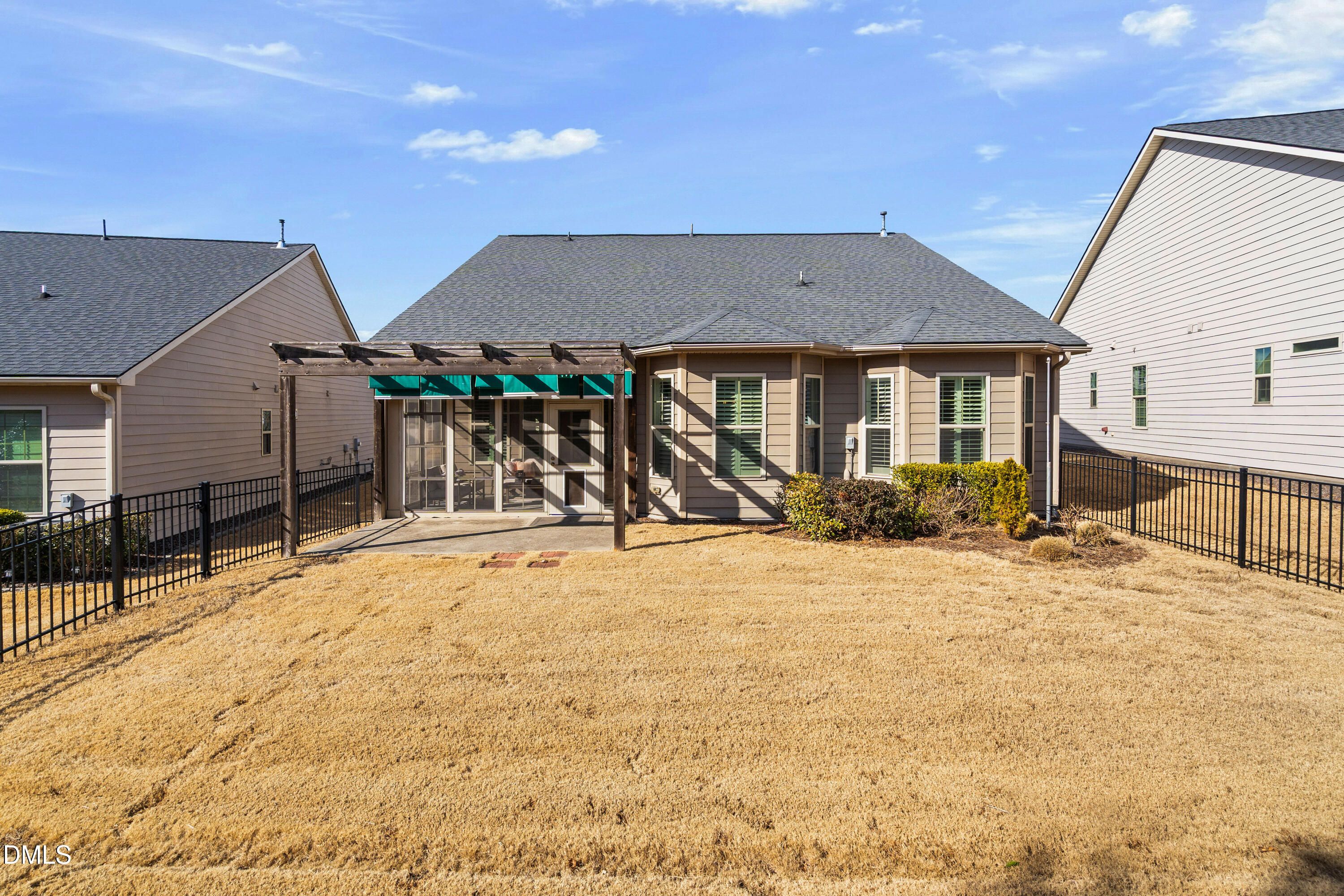 Charming one level Craftsman style ranch home in welcoming 55+ community! Enjoy the upscale finishes throughout the home. The bright kitchen features quartz counters, uplevel cabinets, designer tile backsplash stainless appliances and gas stovetop. The open great room boasts a stone fireplace with transom windows. Lovely dining area with bay window off kitchen, overlooking gardens and landscaping. Flex / office space includes Murphey bed which provides additional storage and extra guest space. Spacious luxury primary retreat with trey ceiling, bay window, spa-like bath with step in shower, and stunning custom finished walk-in closet. Front guest bedroom with large closet and adjacent full bath. Laundry area conveniently located off primary suite near owner's entry. Owner's entry enhanced with additional cabinets and storage also with quartz counters. Beautiful outdoor space includes EZ Breeze enclosed porch and pergola over patio for shade. Relax in the private treelined fenced yard offering nice views and privacy. Enjoy resort style amenities including heated pool, extensive clubhouse space, fitness, pickleball, tennis, and more. The neighborhood is conveniently located in the Brier Creek area near great shopping, restaurants, easy access to major roads and outstanding medical! Showings start Sat; 12:00 Open house.