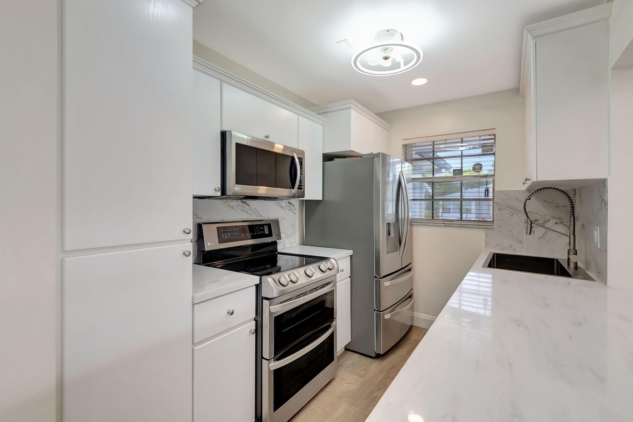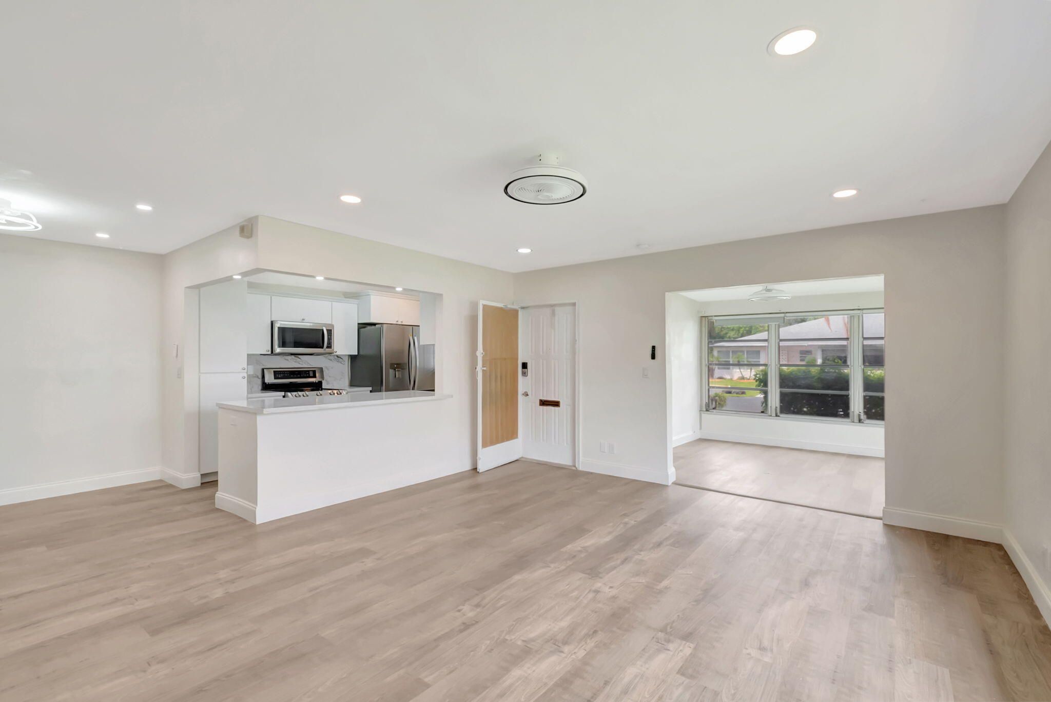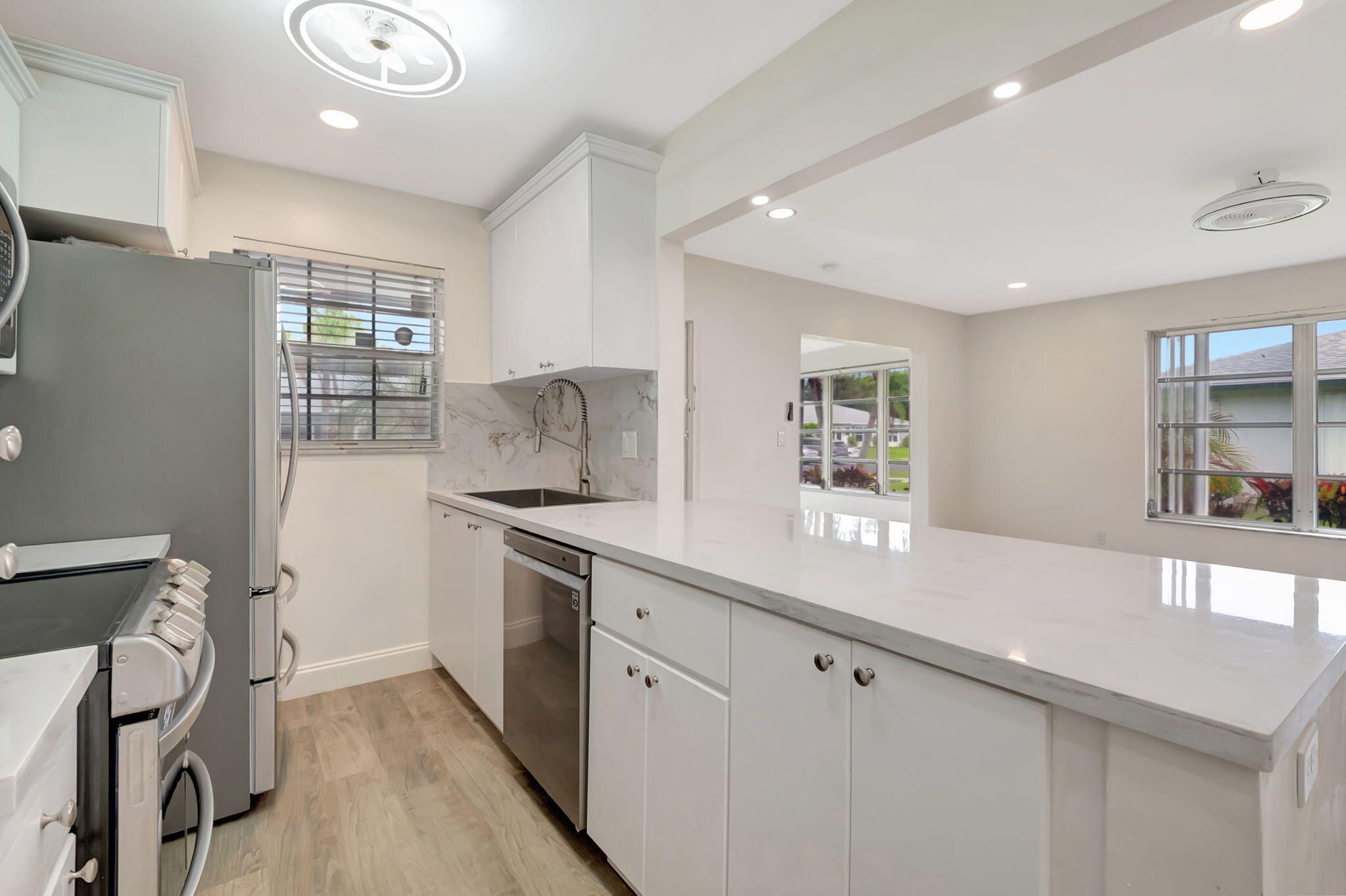 Step into this stunning 2 bedroom, 2 bath villa, where modern elegance meets comfortable living. The versatile den offers the perfect space for work, creativity, or relaxation. Upon entry, the inviting Florida room / porch greets you with serene views, creating a peaceful retreat to enjoy your morning coffee. The kitchen is a chef's delight, featuring sleek updated cabinetry with ample storage, luxurious countertops and a stylish tiled backsplash. The open and spacious layout is ideal for both entertaining and everyday living. This beautifully renovated end unit, in Delray Beach, boasts modern bathrooms, recessed lighting and elegant flooring.