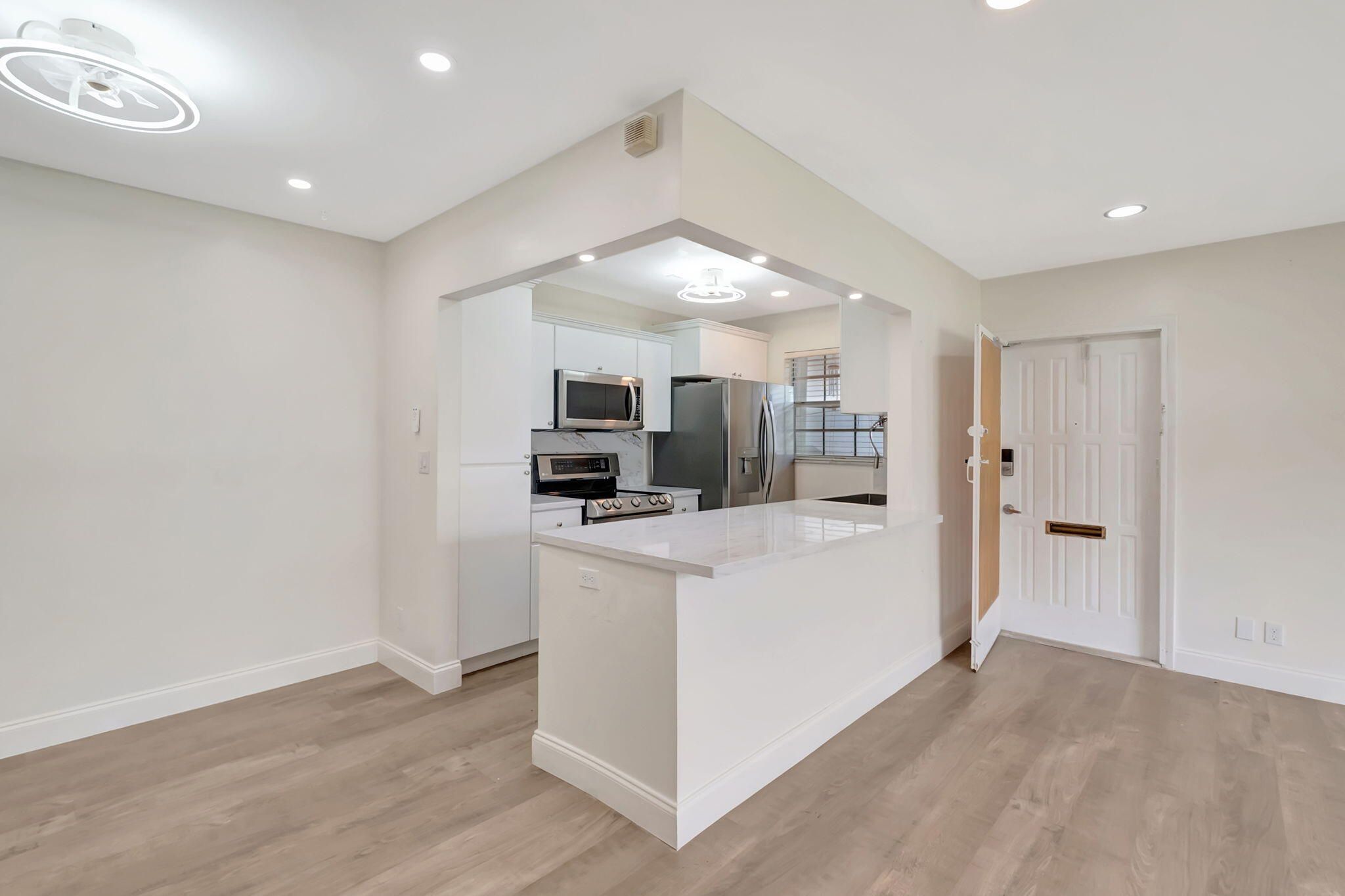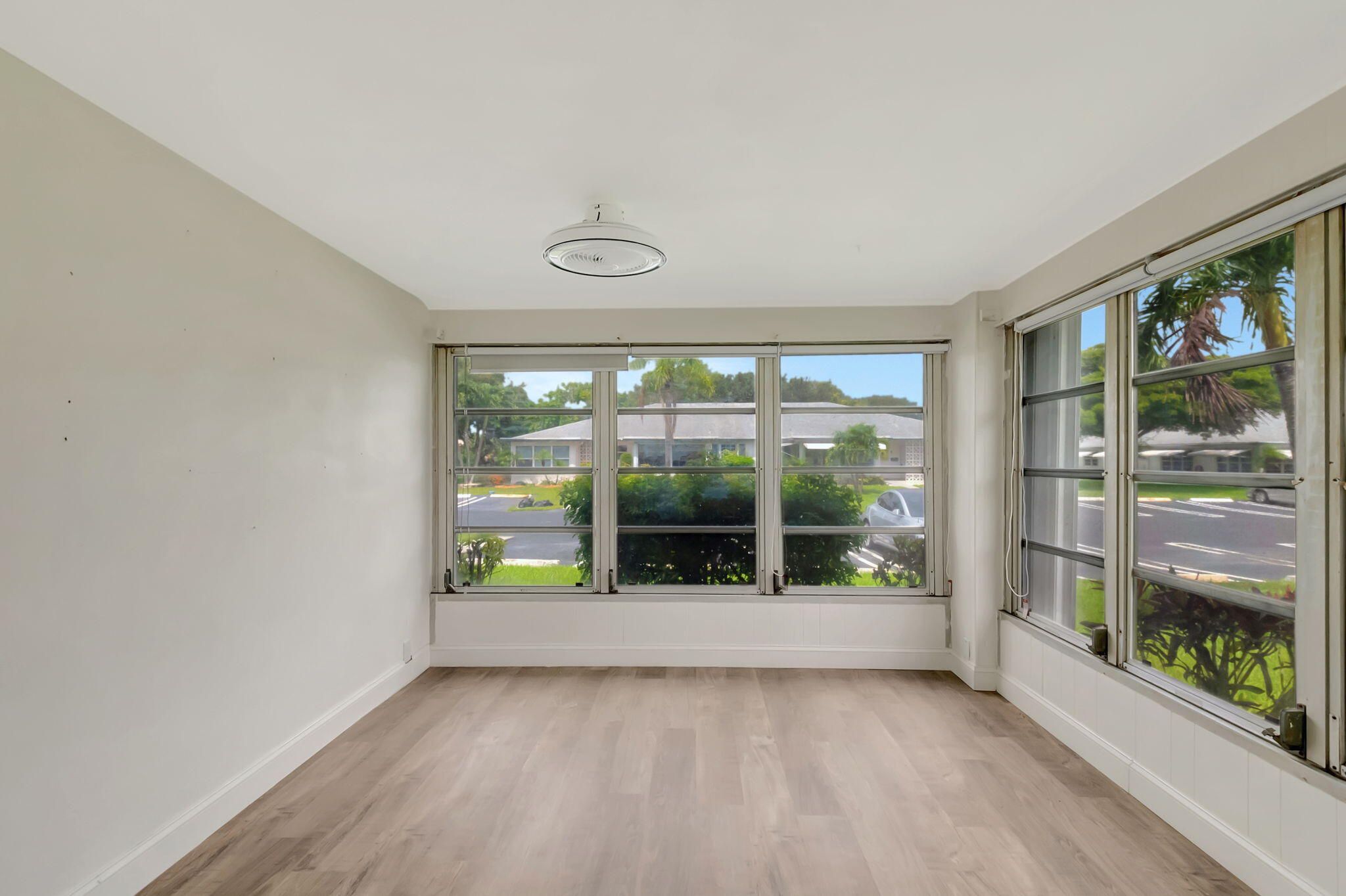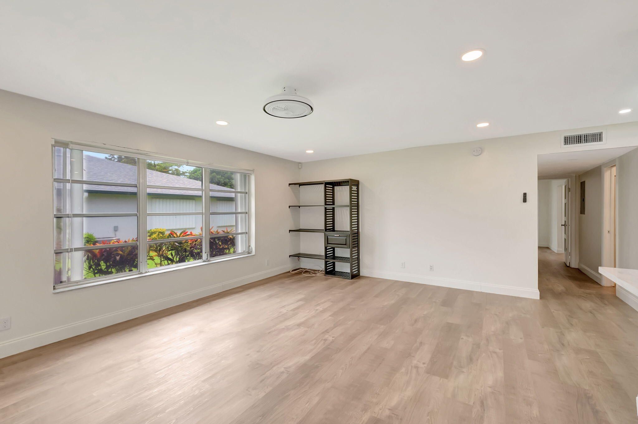 Step into this stunning 2 bedroom, 2 bath villa, where modern elegance meets comfortable living. The versatile den offers the perfect space for work, creativity, or relaxation. Upon entry, the inviting Florida room / porch greets you with serene views, creating a peaceful retreat to enjoy your morning coffee. The kitchen is a chef's delight, featuring sleek updated cabinetry with ample storage, luxurious countertops and a stylish tiled backsplash. The open and spacious layout is ideal for both entertaining and everyday living. This beautifully renovated end unit, in Delray Beach, boasts modern bathrooms, recessed lighting and elegant flooring.