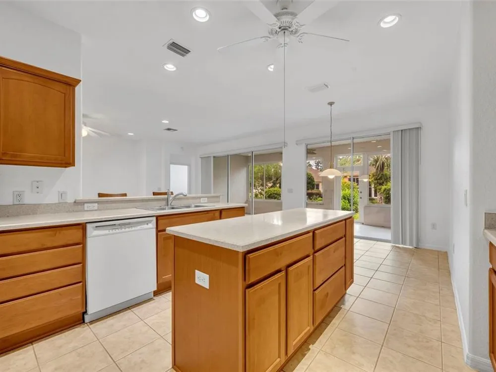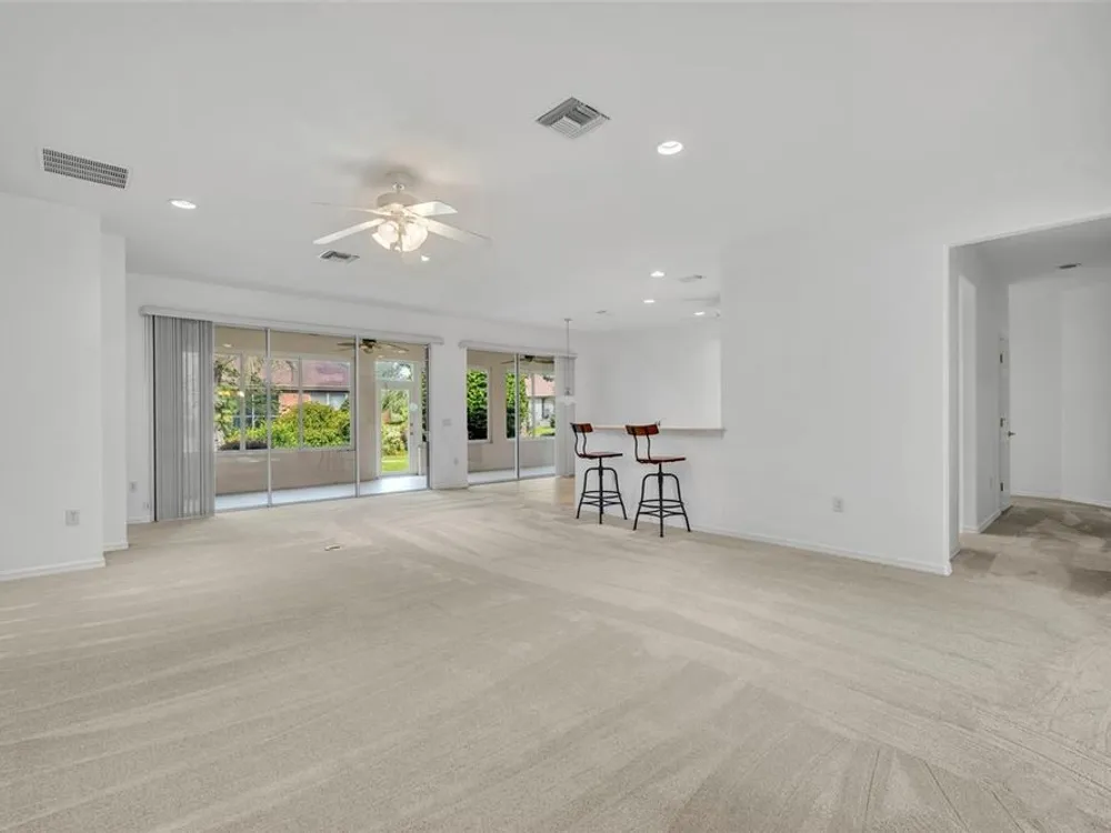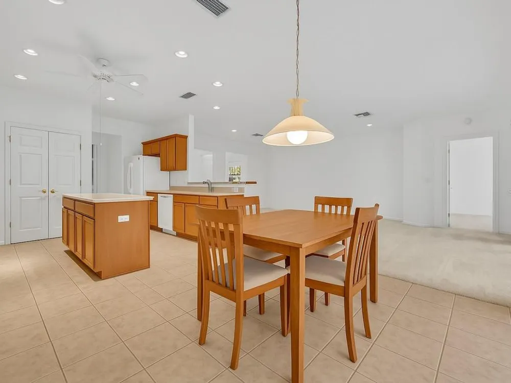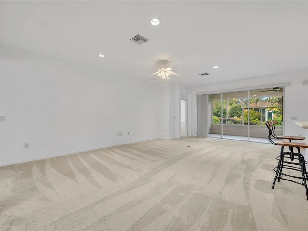One or more photo(s) has been virtually staged. Welcome to resort-style living in the gated Spruce Creek Golf & Country Club! This beautifully maintained Johnstown model features fresh interior paint and new carpet in key living areas, giving the home a bright, inviting feel. The spacious split floor plan offers 3 bedrooms, 2 bathrooms, a den, and a formal dining area, perfect for entertaining or flexible everyday living. The kitchen is the heart of the home, complete with a large island, breakfast bar, roll-out storage, pot and pan drawers, and a sunny eat-in nook. A full-size laundry room with abundant storage adds everyday convenience. Step out to the enclosed lanai, surrounded by mature landscaping for privacy and relaxation. Located in Castle Pines, you’re just a golf-cart ride away from the Lake Vista Recreation Center. Enjoy a wealth of amenities including two outdoor and one indoor heated pool, a fitness center, pickleball, tennis, bocce ball, 36 holes of championship golf, walking trails, RV storage, and countless clubs and social activities, all with no CDD fees! Conveniently close to shopping, dining, and medical facilities, this home blends comfort, community, and convenience. Major updates: Roof 2021 • Tankless Water Heater 2017 • HVAC 2017