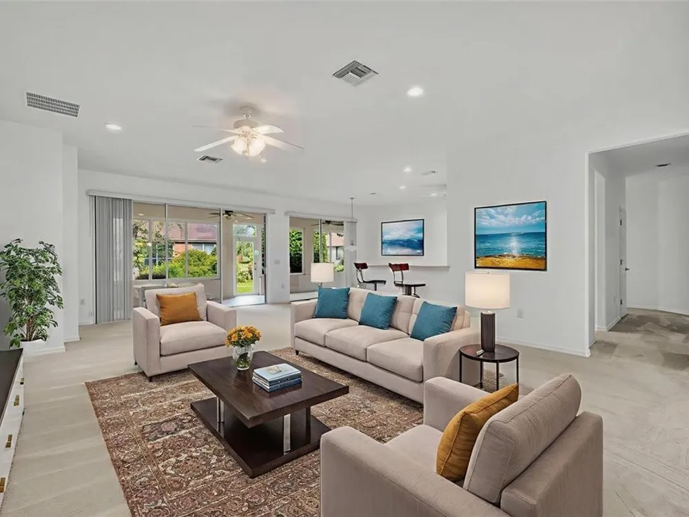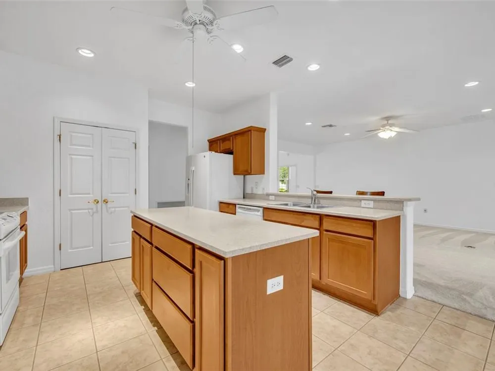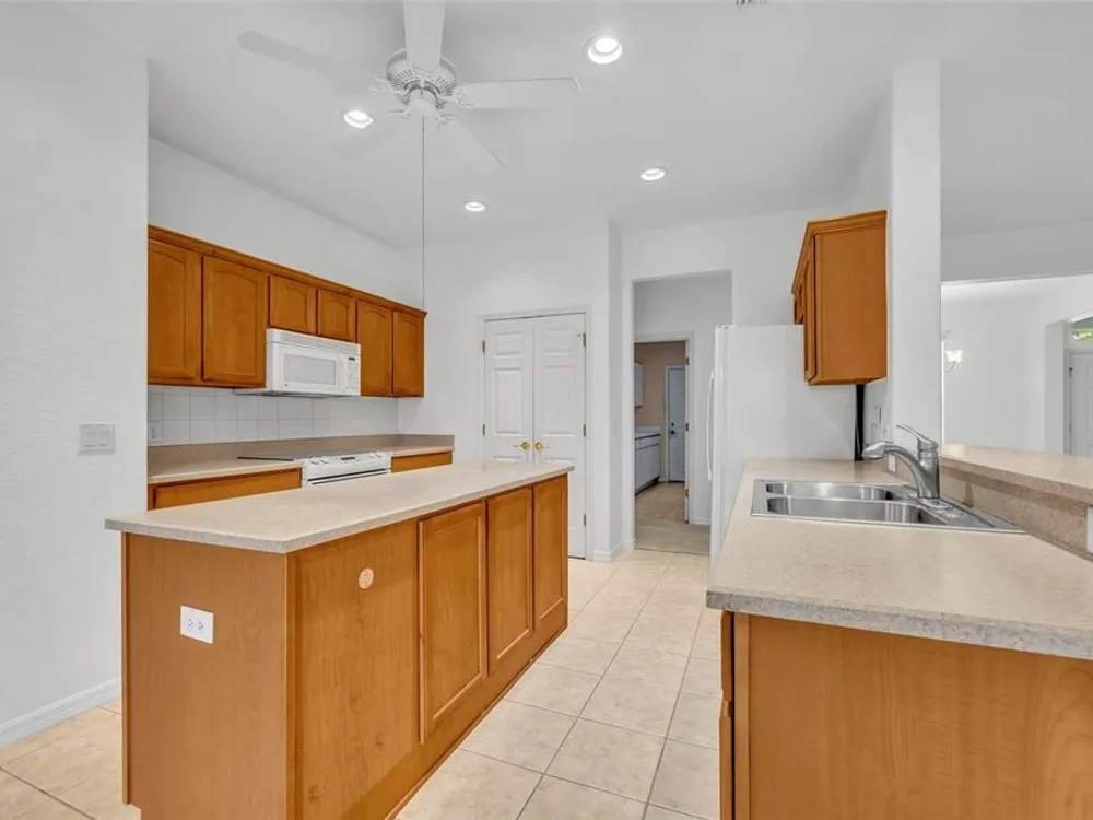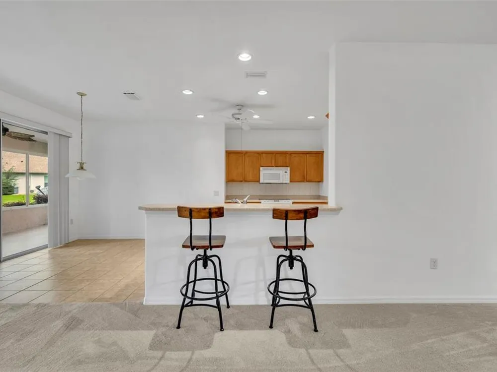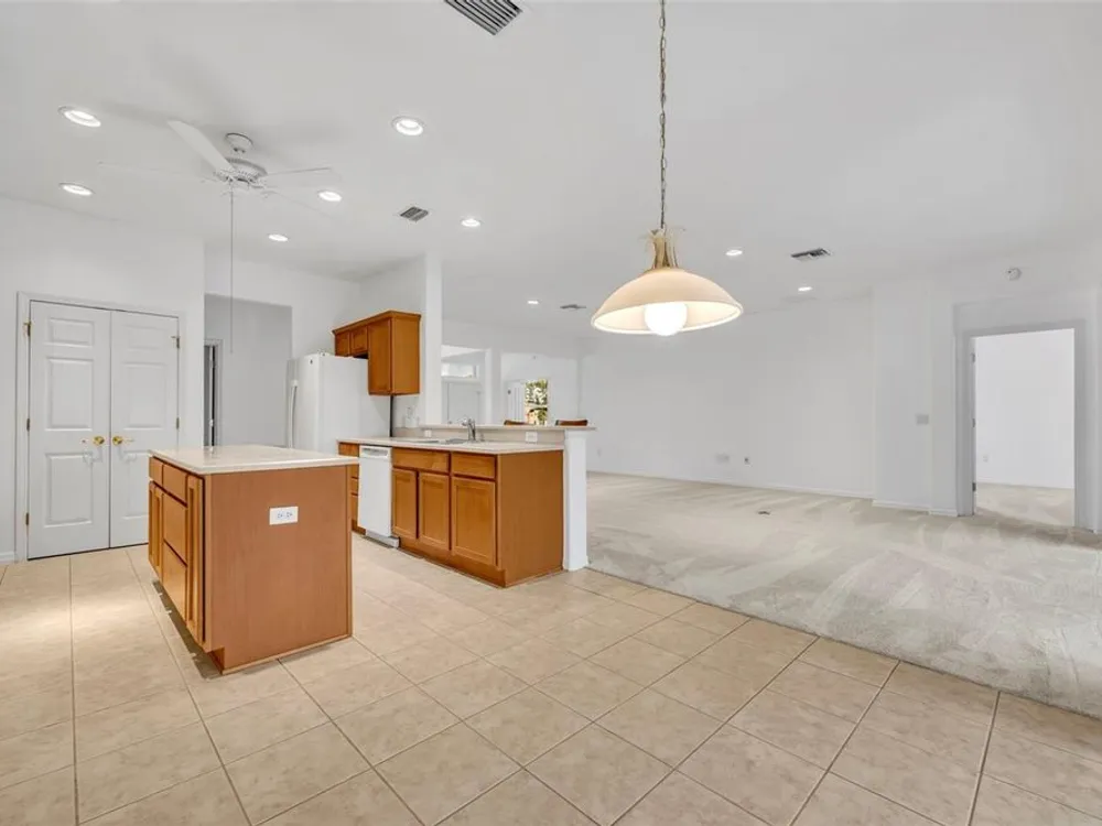 One or more photo(s) has been virtually staged. Welcome to resort-style living in the gated Spruce Creek Golf & Country Club! This beautifully maintained Johnstown model features fresh interior paint and new carpet in key living areas, giving the home a bright, inviting feel. The spacious split floor plan offers 3 bedrooms, 2 bathrooms, a den, and a formal dining area, perfect for entertaining or flexible everyday living. The kitchen is the heart of the home, complete with a large island, breakfast bar, roll-out storage, pot and pan drawers, and a sunny eat-in nook. A full-size laundry room with abundant storage adds everyday convenience. Step out to the enclosed lanai, surrounded by mature landscaping for privacy and relaxation. Located in Castle Pines, you’re just a golf-cart ride away from the Lake Vista Recreation Center. Enjoy a wealth of amenities including two outdoor and one indoor heated pool, a fitness center, pickleball, tennis, bocce ball, 36 holes of championship golf, walking trails, RV storage, and countless clubs and social activities, all with no CDD fees! Conveniently close to shopping, dining, and medical facilities, this home blends comfort, community, and convenience. Major updates: Roof 2021 • Tankless Water Heater 2017 • HVAC 2017