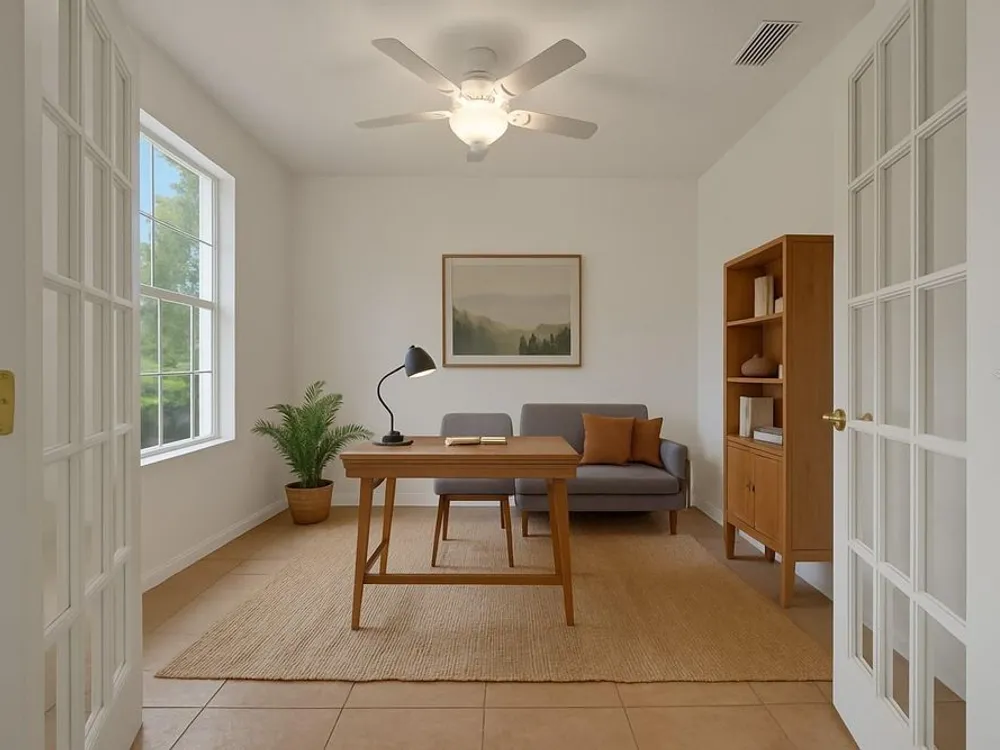 - Ceiling Fan(s), Eat-in Kitchen, High Ceilings, Open Floorplan, Thermostat, Walk-In Closet(s)