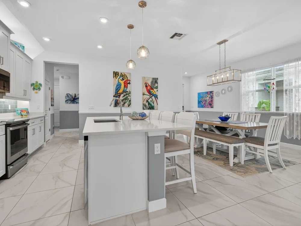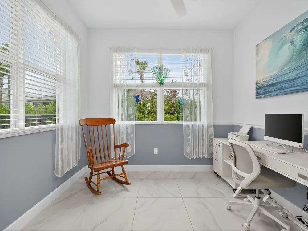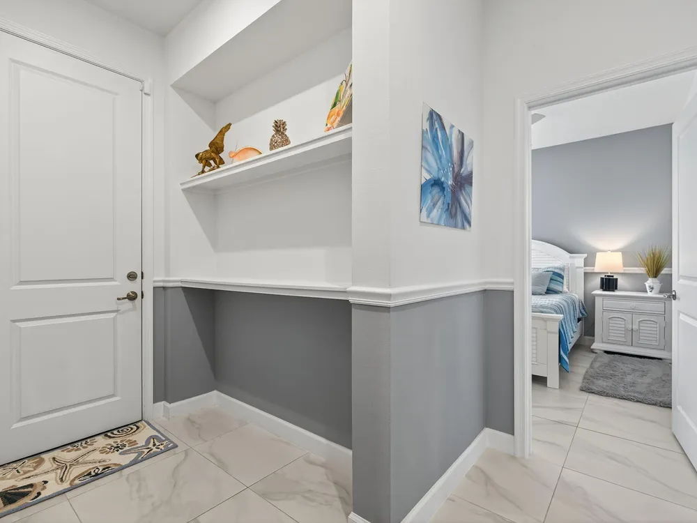 - Built-in Shelving, Kitchen Island, Pantry, Split Bedrooms, Walk-In Closet(s), Home Office, Kitchen/Dining Combo, Impact Glass, Primary Downstairs, Separate Shower, Washer/Dryer Hookup