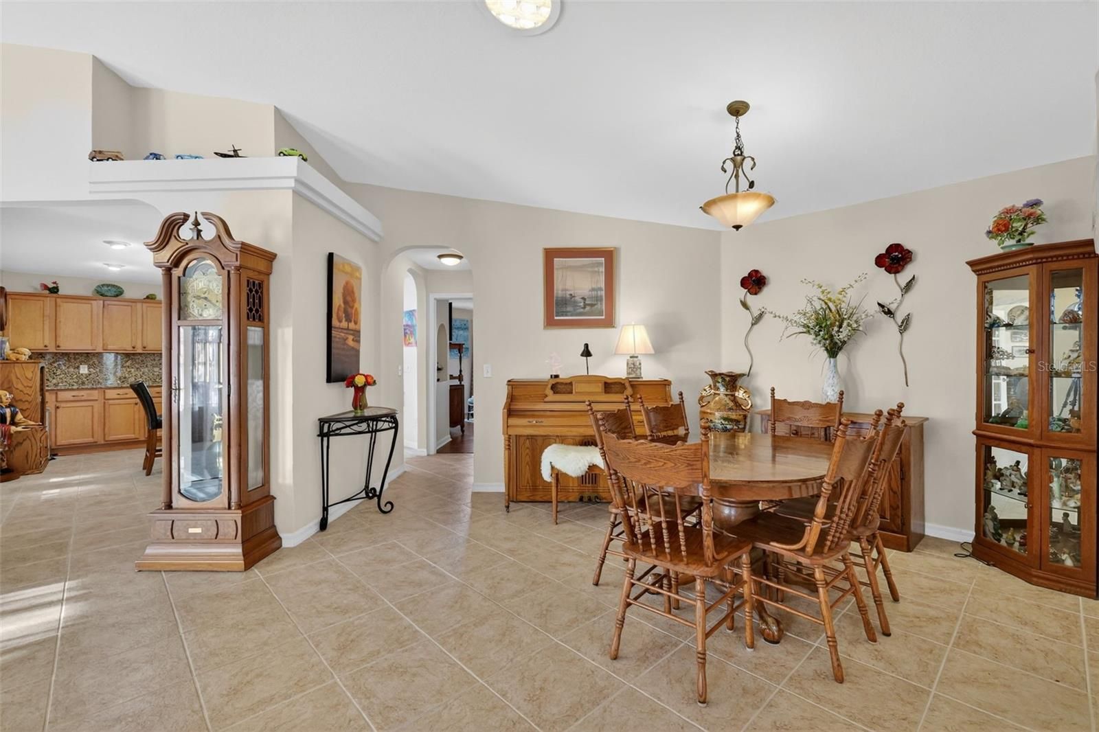 - Ceiling Fan(s), Eat-in Kitchen, High Ceilings, L-Shaped Dining Room, Open Floorplan, Main Level Primary, Solid Surface Counters, Solid-Wood Cabinets, Vaulted Ceiling(s), Walk-In Closet(s), Window Treatments