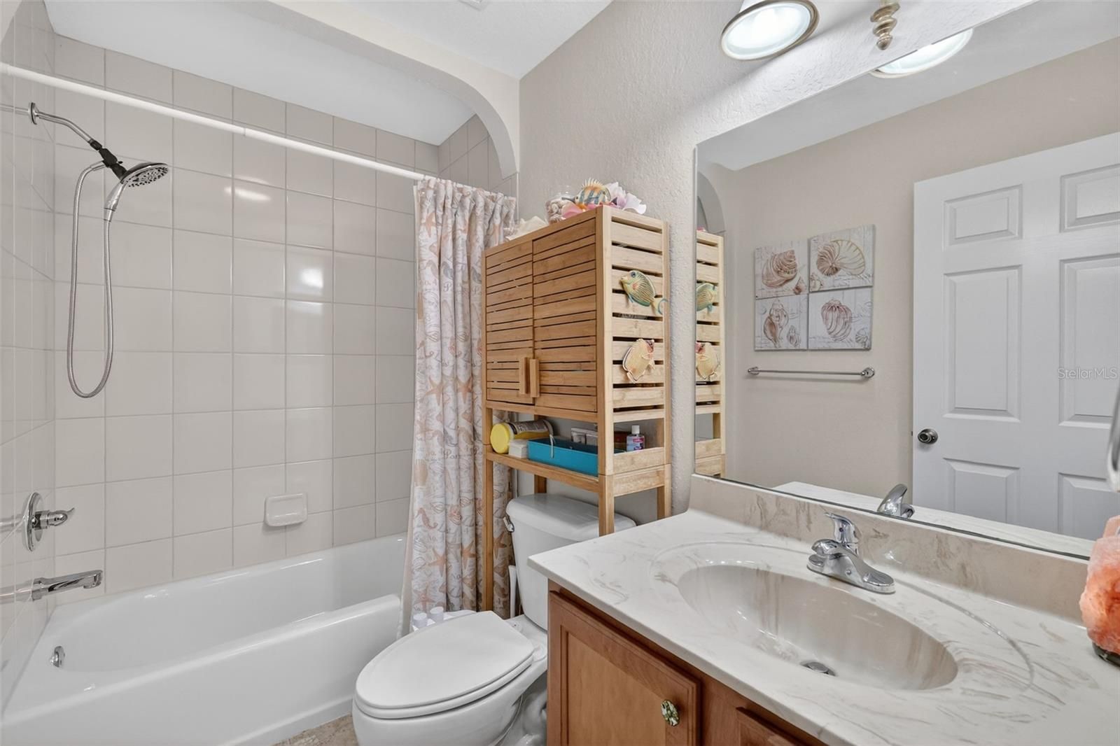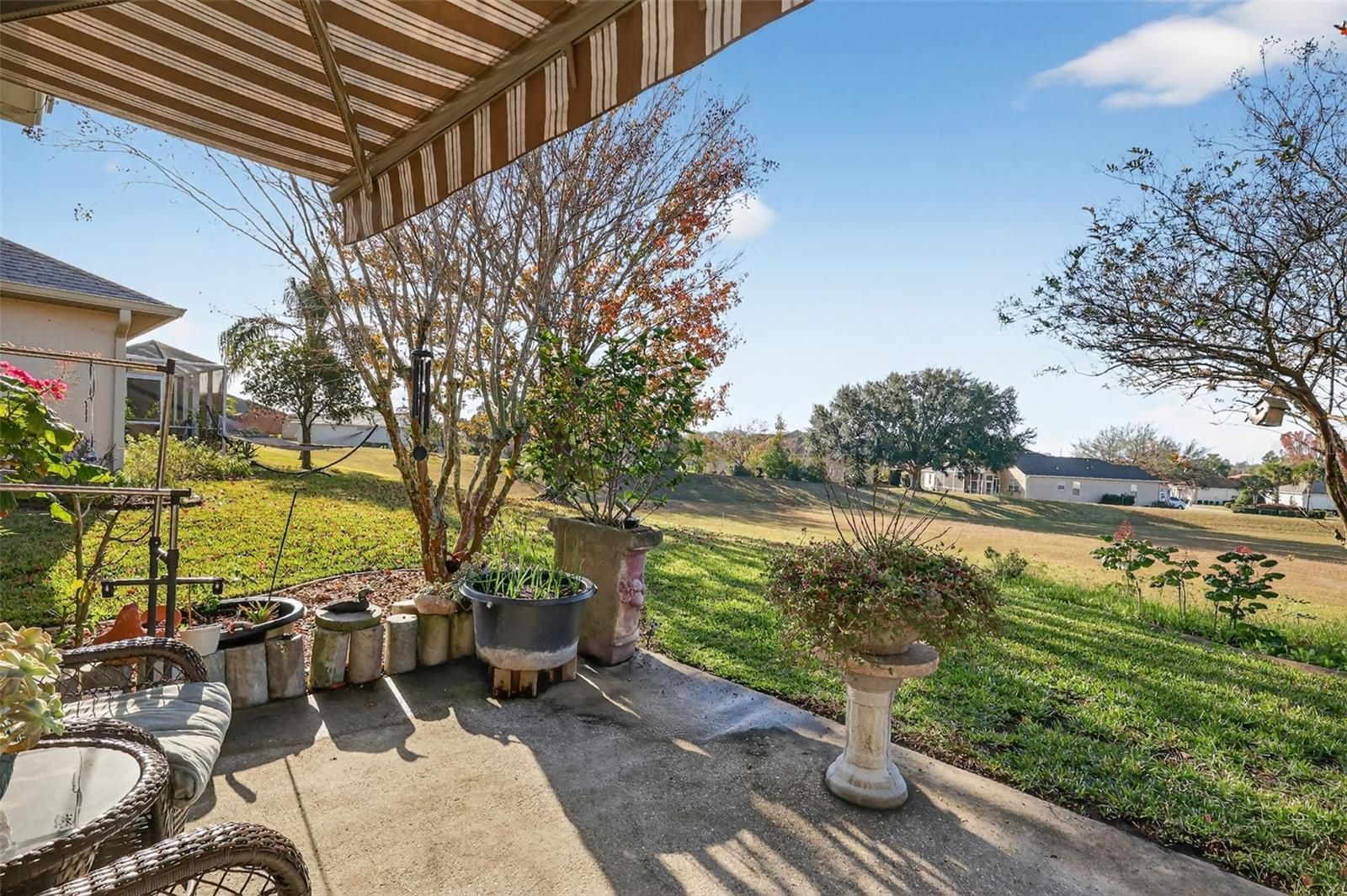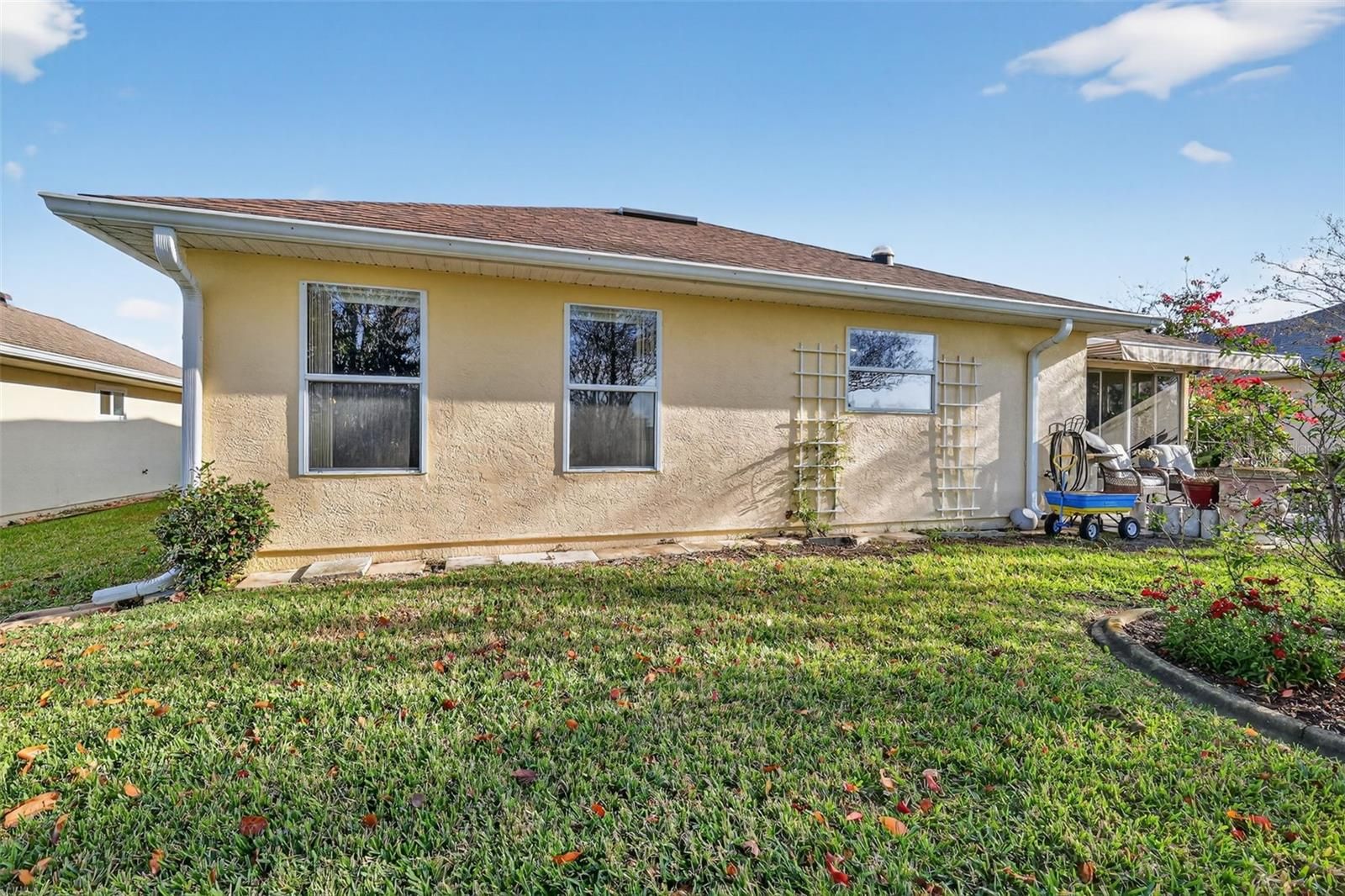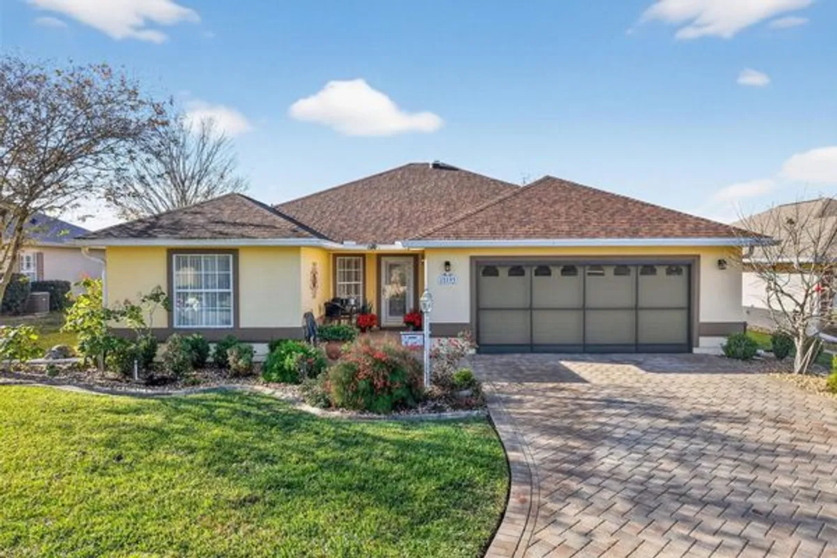 Welcome to this little piece of heaven in Stonecrest a 55 plus gated golf course community. As you walk up the cobblestone driveway to the front door you will see a beautifully maintained yard and an area at your front door to sit and relax. Entering the home you will notice there is tile throughout this home, no carpet. The guest bedroom is adjacent to the bathroom while the master bedroom is on the other side of the home which allows lots of privacy when you have family/friends visiting. In the master bedroom you will find lots of room as well as a your own private large bathroom. There is a formal dining area for entertaining which opens to the living/ family room. Not only do you have a formal dinning area, you also have a huge eat in kitchen. The kitchen has great lighting, lots of cabinet space as well as spacious granite counter tops and stainless steel appliance that stay with the home. Be sure to open the kitchen window shutter and check out the private open space view, no home behind you. Adjacent to the living/family room you will see a double entry to the office/den. Off the kitchen there are french doors that open to a porch area that looks out over the private open space area. Enjoy the private view of the enclosed porch with no home directly behind you. Additional items to know: Roof is new in 2025, Exterior paint is newer, Screens on front of garage door 2 years old, Rain bird Sprinkler 2 years old, Garage door opener & remotes 2 years old, A/C unit 2 years old, Water heater 3 years old, there are 3 solar tubes located in the home in the kitchen, formal dining area and the guest bathroom, Electric awning on rear of home newer. The garage has great space for 2 cars and lots of storage. With the pools, softball, 18 hole championship golf course, pickleball courts and the golf & social club and over 80 clubs to join there is always something to do and new friends to meet. You are a short drive to access the shopping and nightly entertainment in the Villages. The community of Stonecrest has private roads and 24 hour security. We look forward to seeing you soon.