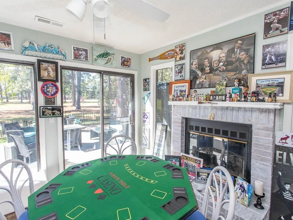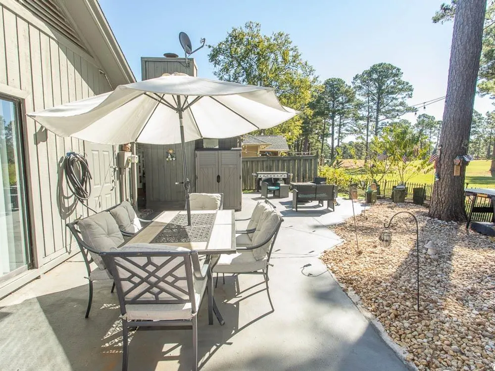 This comfy, cozy and conveniently located cottage-style ranch in sought-after Active 55+ Myrtle Trace is a perfect place to retire and enjoy life "at the beach". Just a few miles from the wonderful attractions, shopping and beaches of the Grand Strand, this inviting community is nestled next to Burning Ridge Golf Course with Aldi's, Walmart, restaurants and Wild Wing Golf Course also very close by. The home itself, has stunning views of the 10th fairway from the large back patio. Inside you will find an updated (2020), expanded kitchen with stainless steel appliances incl a combo range (convection, air fryer and reg bake), a center island and large pantry. The living room has a bonus area that could be turned into a small third bedroom. There are 2 FIREPLACES in the home. One located in the liv rm and one in the unique den or "man-cave" area off the expanded living room area. Separated by a pocket door, the den also has 2 sliders to the rear patio which lets the beautiful view of the golf course in. 2 additional generous bedrooms (the master has 2 walk in closets), 2 updated baths , a new roof (2021) and TONS of storage space inside and out makes this a great place to call home. The amenities at the clubhouse included in the low HOA fee feature an outdoor pool, bocce ball , basketball court, clubs and organized activities and gatherings.
