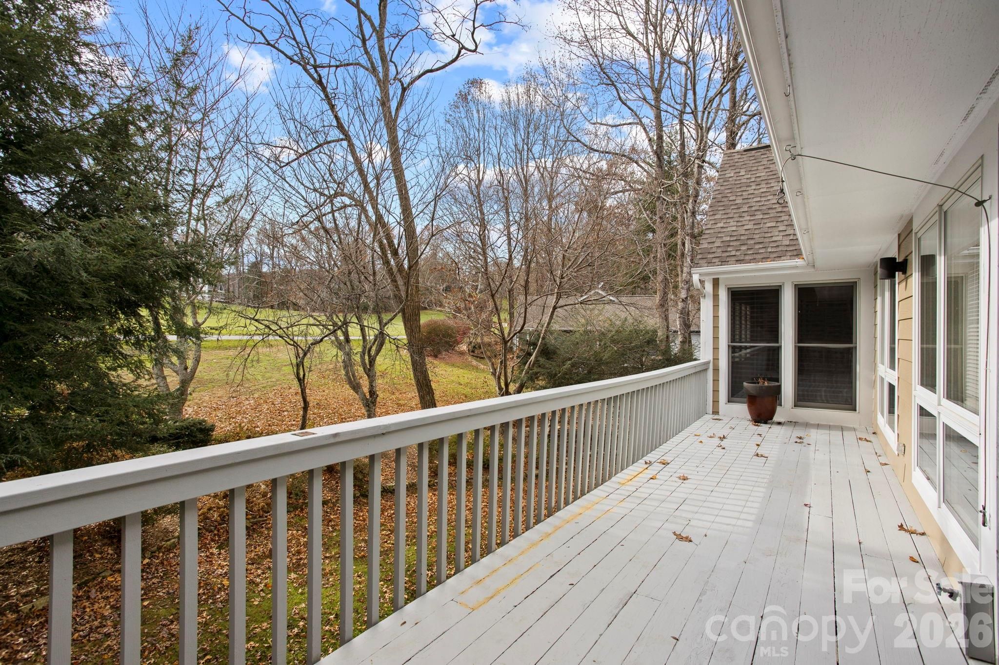 Stunning Golf Course Condo on the 16th Fairway in Prestigious Kenmure. Exceptional four-bedroom, three-bath condo ideally located on the 16th fairway in Kenmure, a highly sought-after gated golf course community. This beautifully updated residence offers an outstanding open floor plan, abundant natural light, and golf course views. Prepare to be impressed as you enter the main level featuring vaulted ceilings and a dramatic great room with a wall of windows overlooking the fairway. The great room is highlighted by a gas fireplace flanked by custom bookcases and flows seamlessly into the dining area and upscale kitchen—perfect for entertaining. The spacious kitchen is both stylish and functional, featuring granite countertops, tile backsplash, high-end stainless steel appliances, a large island with a one-piece sink and breakfast bar, and a pantry. The dining area remains open to the main living space, enhancing the home’s inviting layout. The primary suite is a true retreat, offering a large walk-in closet and a spa-like upgraded bath with double vessel sinks and a stunning tiled walk-in shower with bench and dual showerheads. A guest bedroom on the main level also functions beautifully as a den or office, along with a guest bath and a spacious laundry room with washer and dryer. The lower level features a generous family room with a wall of windows, built-in entertainment/bookcase, and sliding doors leading to the deck. Two additional guest bedrooms and a full bath complete this level, offering privacy and flexibility for guests. Outdoor living is exceptional with multiple spaces to relax and enjoy the golf course views, including a covered front porch, screened porch, and expansive multi-level decking. Convenient golf cart access to the clubhouse and amenities via a nearby cart path adds to the lifestyle appeal. Ideally located near the entry gate, amenities, and just minutes from downtown Hendersonville shopping and restaurants, this impressive condo offers luxury living, stunning views, and an unbeatable location in Kenmure.