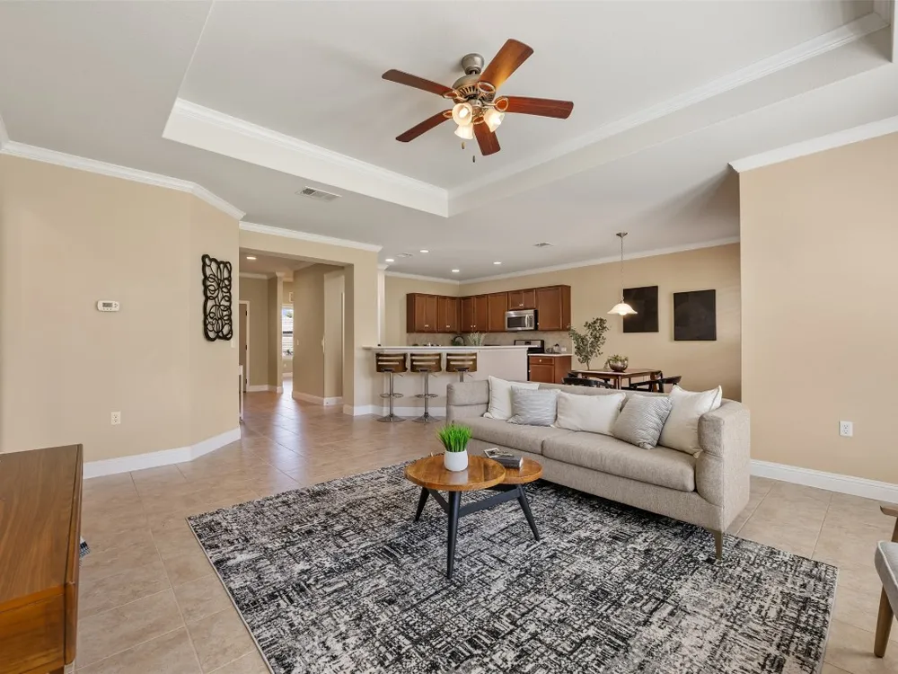 - Tray Ceiling(s), Ceiling Fan(s), Coffered Ceiling(s), Double Vanity, Eat-in Kitchen, Granite Counters, NoInteriorSteps, Open Floorplan, Pantry, High Speed Internet