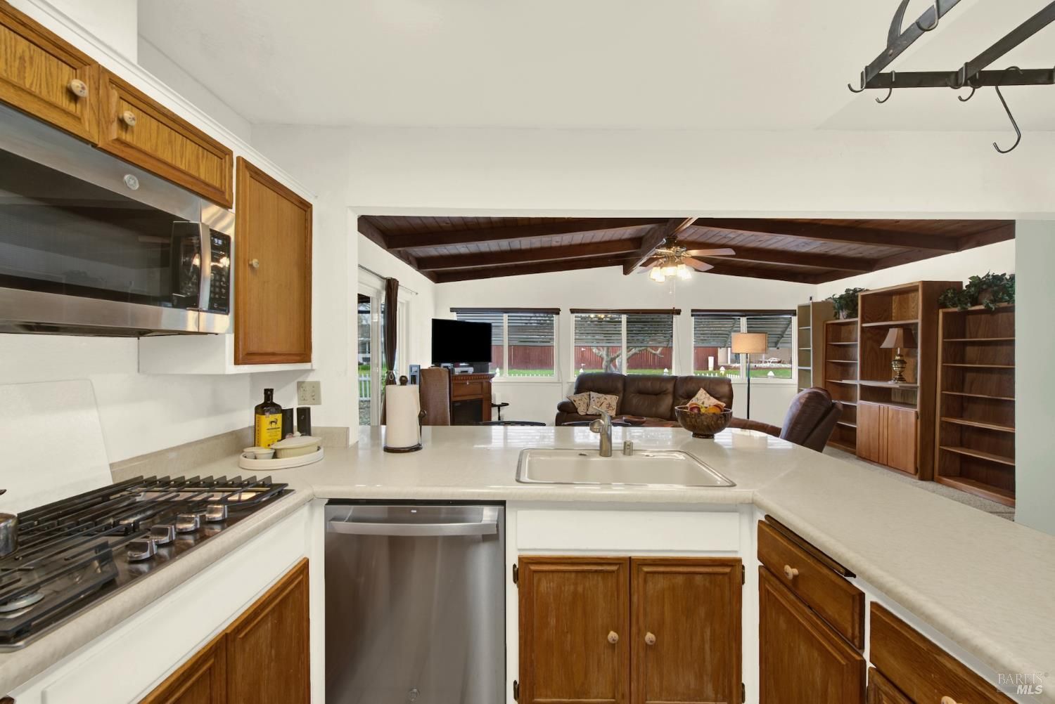 - Built-In Gas Oven, Dishwasher, Disposal, Gas Cooktop, Gas Water Heater, Microwave