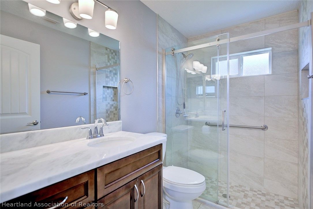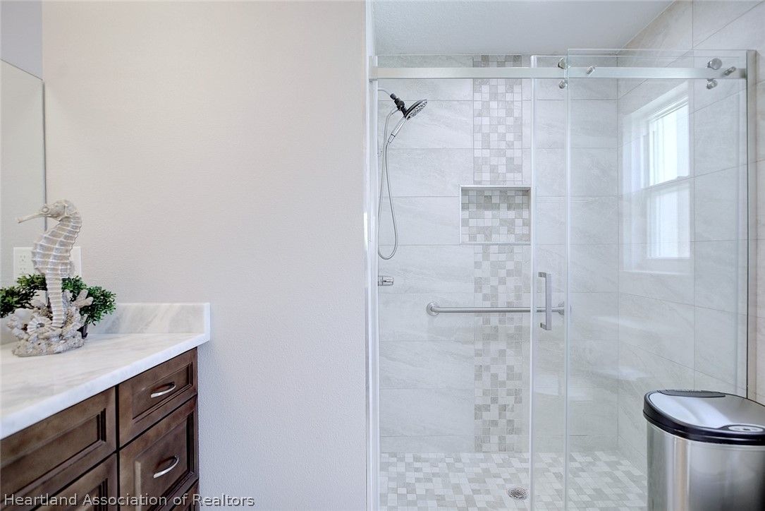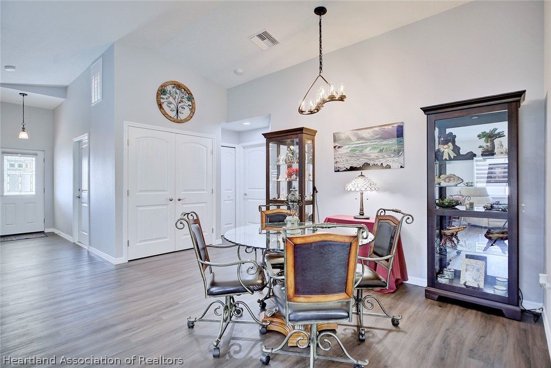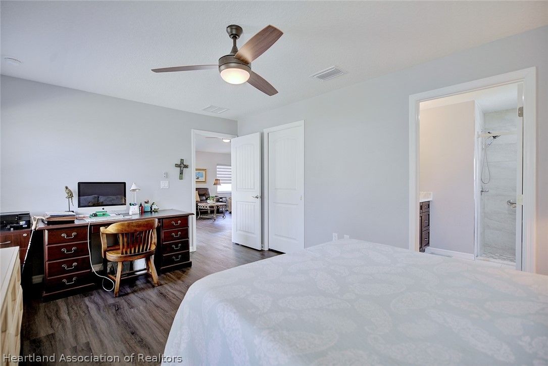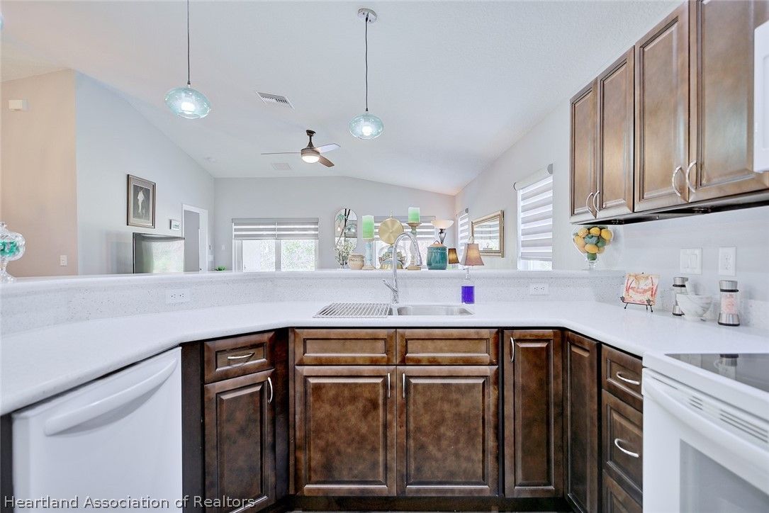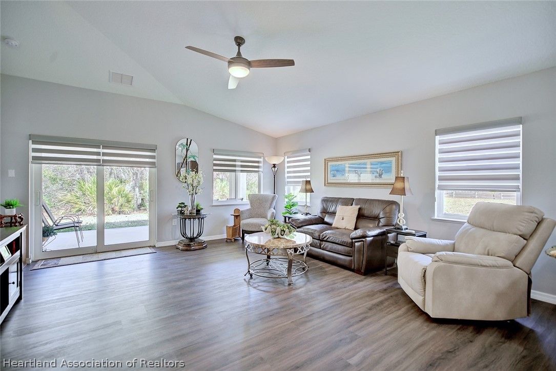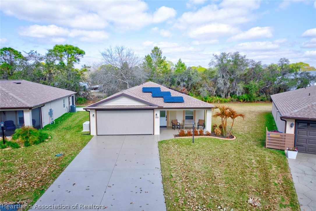 What a great value in this RARE 3 br/2ba/2 car garage Single Family home in popular Covered Bridge, Lake Placid’s affordable 55 plus community! This NEWER 2022 construction is beautifully appointed with plank tile flooring, cathedral ceilings, solid surface kitchen counters, soft close drawers and upgraded window treatments. You’ll love the bright, open floorplan with spacious bedrooms and living area, and a large two car garage. No storm worries with the WHOLE HOUSE GENERATOR, and the solar system keeps your electric bill low. The Master Suite features cathedral ceilings, a walk in closet and master bath with dual quartz vanity and tiled walk-in shower with a frameless shower door. The third bedroom is currently set up as an office. Note the private setting with your back patio overlooking the wooded area behind the home. Covered Bridge has a very low HOA fee that gives you access to the amenities including a heated pool and spa, pickleball courts, shuffleboard, community center with a large kitchen, exercise room and a pool/game room. A very active community, you can be as involved as you want to be. Don’t delay seeing this well priced home… it won’t last!