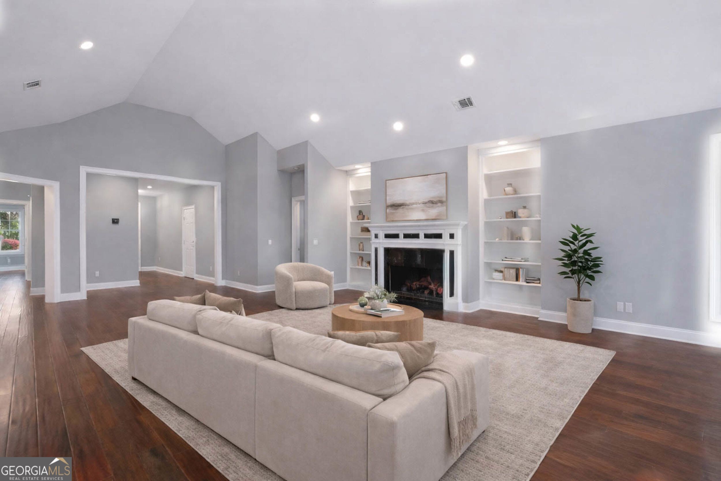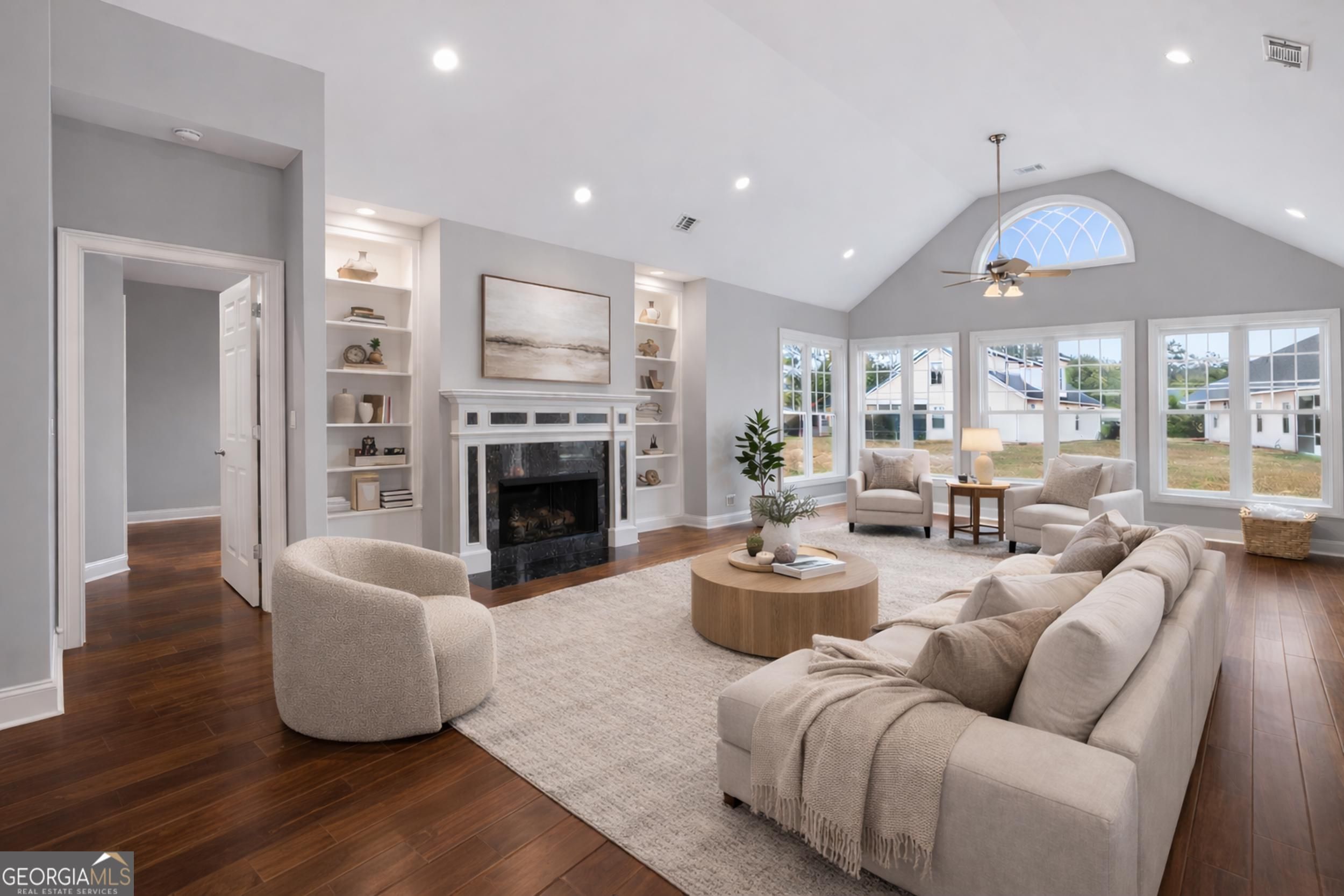 - Bookcases, High Ceilings, Main Level Primary, Walk-In Closet(s), Den, Family Room, Great Room, Laundry Facility
