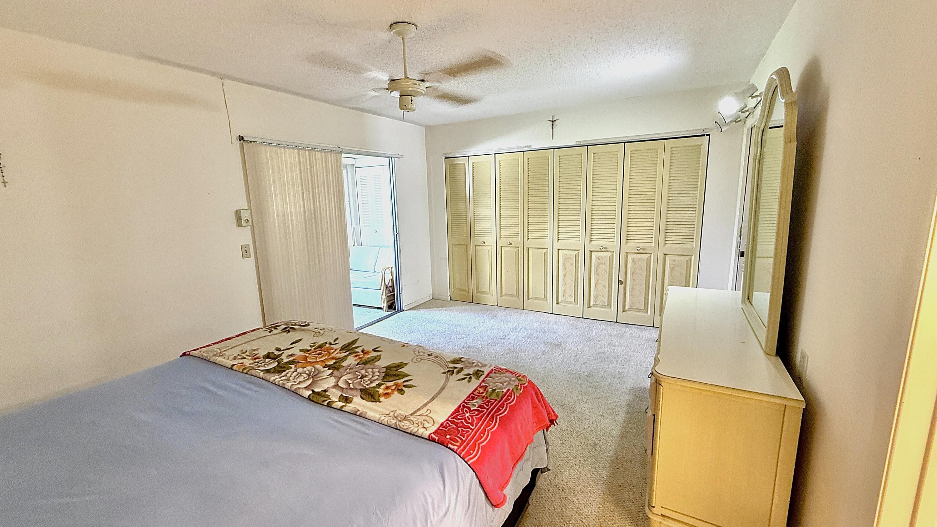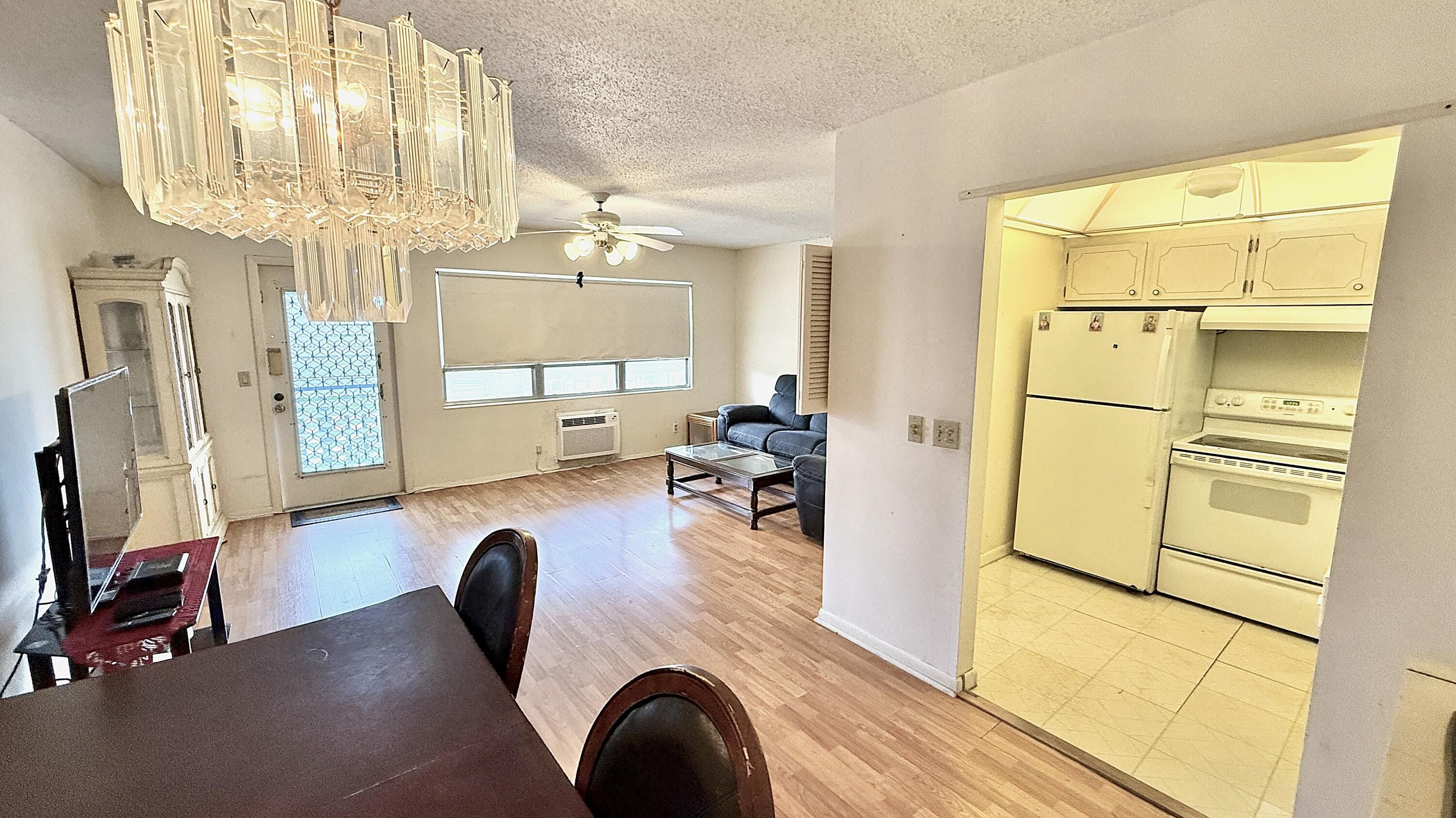 2nd Floor partially furnished 1 BR & 1.5 Bath in Garden Style Building. Walk out your front door and enjoy a serene walk along the canal. Laminate flooring throughout. Enclosed Patio with with garden view. Near Oakridge Community Pool. Living Room AC replaced 2025. Enjoy resort style active 55+ community w/ tons of amenities, 16 satellite pools, clubhouse, Olympic size indoor heated pool, professional exercise center, tennis, volley ball, bocce ball, luxury theater, movies, café, billiards, shuffle board, classes, sauna, outdoor pool, free bus transportation, near shopping & approx. 4 miles to beaches.