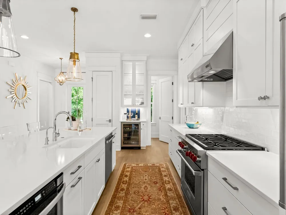 - Dishwasher, Disposal, Dryer, Microwave, Double Oven, Range Hood, Refrigerator, Ice Maker, Smoke Detector, Stove, Oven, Dual Fuel, Washer, Wine Refrigerator