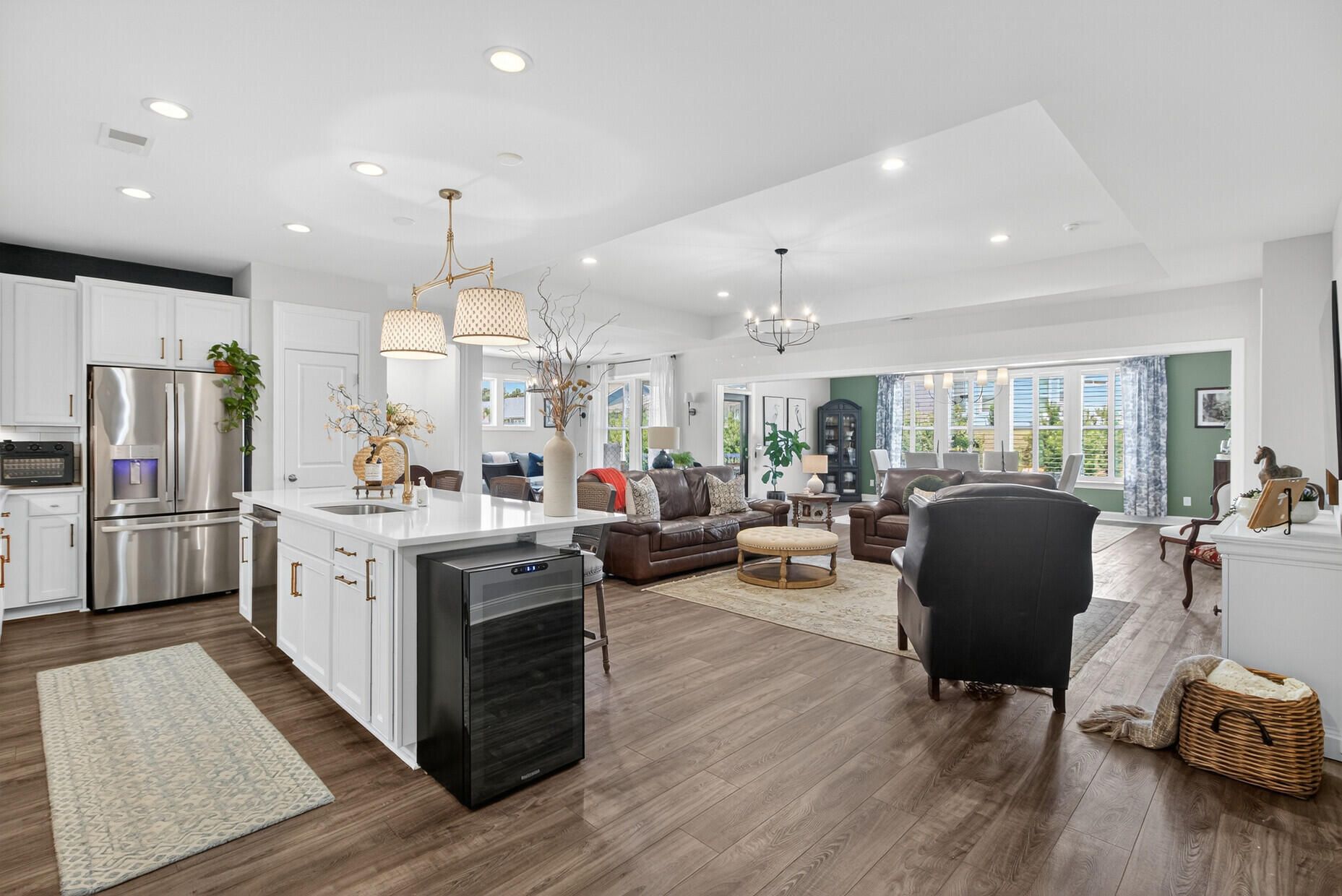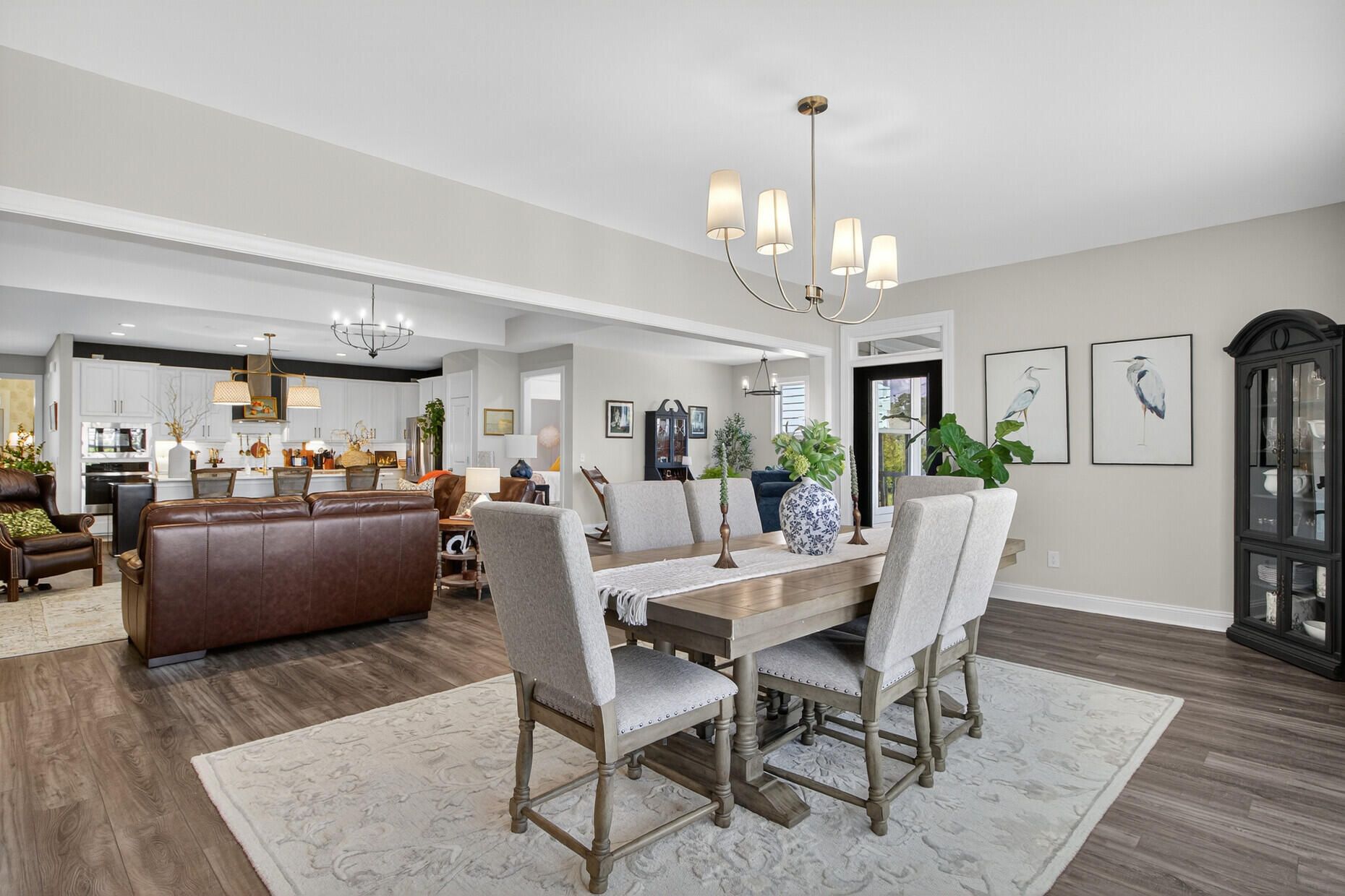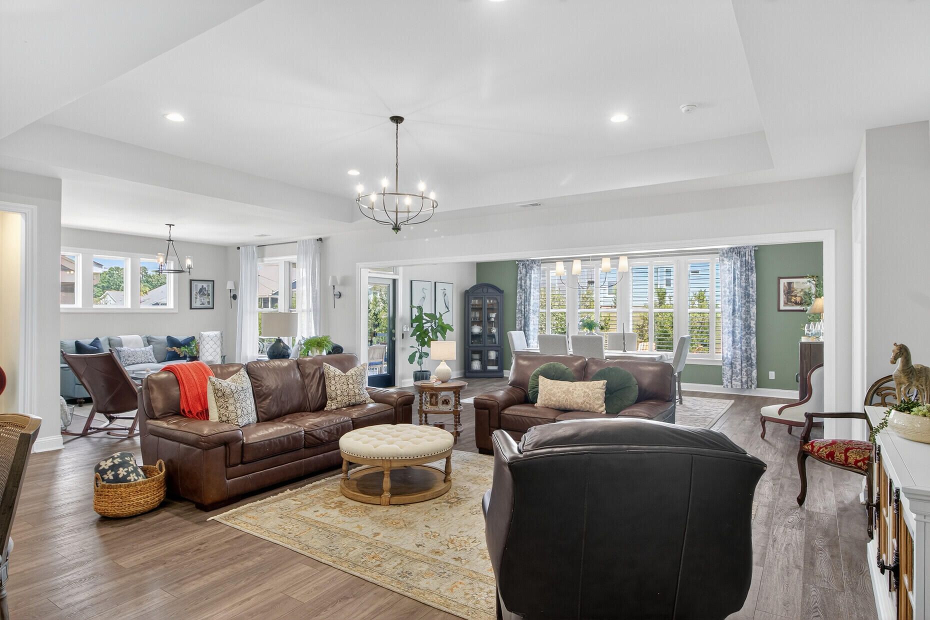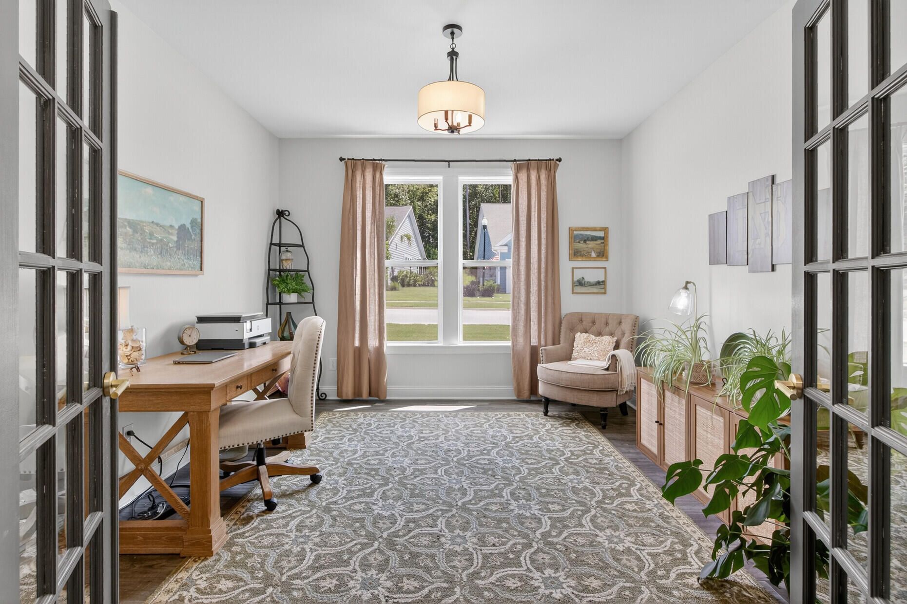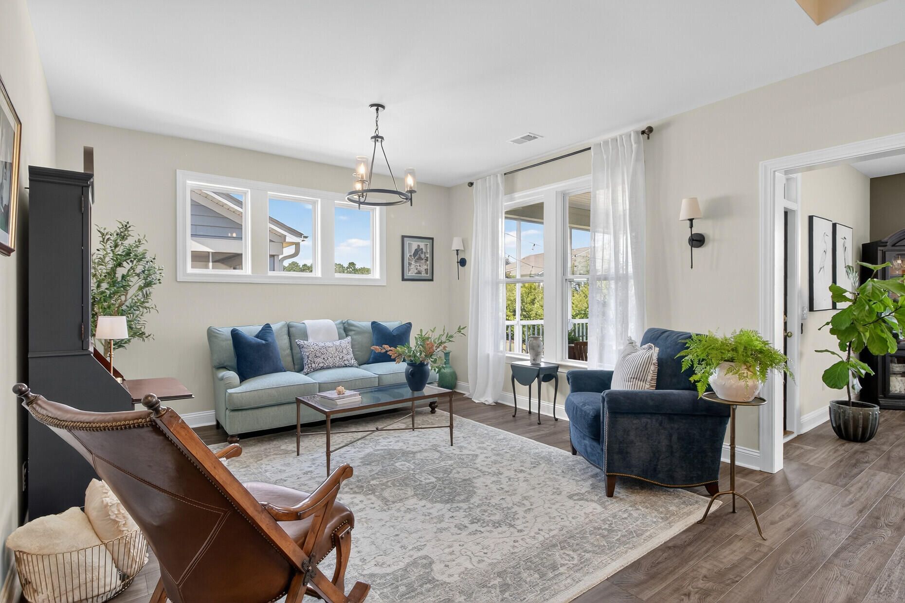 Nestled on a desirable corner lot, 122 Waxwing is an elegantly appointed, versatile one-story Mulberry plan featuring 3 bedrooms and 3 baths within a spacious 2,676 square feet. Every selection and upgrade reflects exceptional craftsmanship, enhancing both everyday living and entertaining within this open-concept layout. The design maximizes space and natural light, creating a warm and inviting atmosphere that seamlessly connects comfort and functionality. The addition of French doors transforms the office into a tranquil sanctuary or efficient home workspace. Generously sized bedrooms provide private retreats for every resident, while the Owner's Suite serves as a luxurious haven, complete with an oversized enclosed tile shower and abundant closet space.A gourmet kitchen, equipped with premium GE Café appliances and a gas cooktop, encourages culinary innovation. The stunning valley white quartz countertops and spacious island foster gatherings that lead gracefully into the elegant living area(with plantation shutters ) transition to the sunroom and screened porch, offering that offer the charm of Lowcountry living. The front-entry 3-car garage ensures ample space for vehicles, golf carts, bicycles, and sporting equipment, while the convenient drop-in laundry tub with cabinets and countertop, along with EVP flooring, enhances the practicality of this home. Residents of Cresswind enjoy a wealth of exceptional amenities, including clubhouses, recreational facilities, walking trails, and a variety of organized social activities. This nurturing environment promotes connections among neighbors, fostering a strong sense of community within The Ponds.