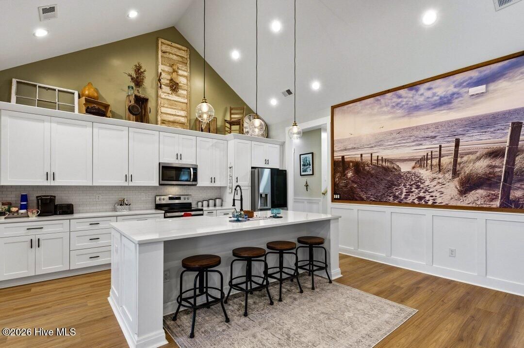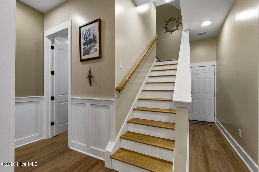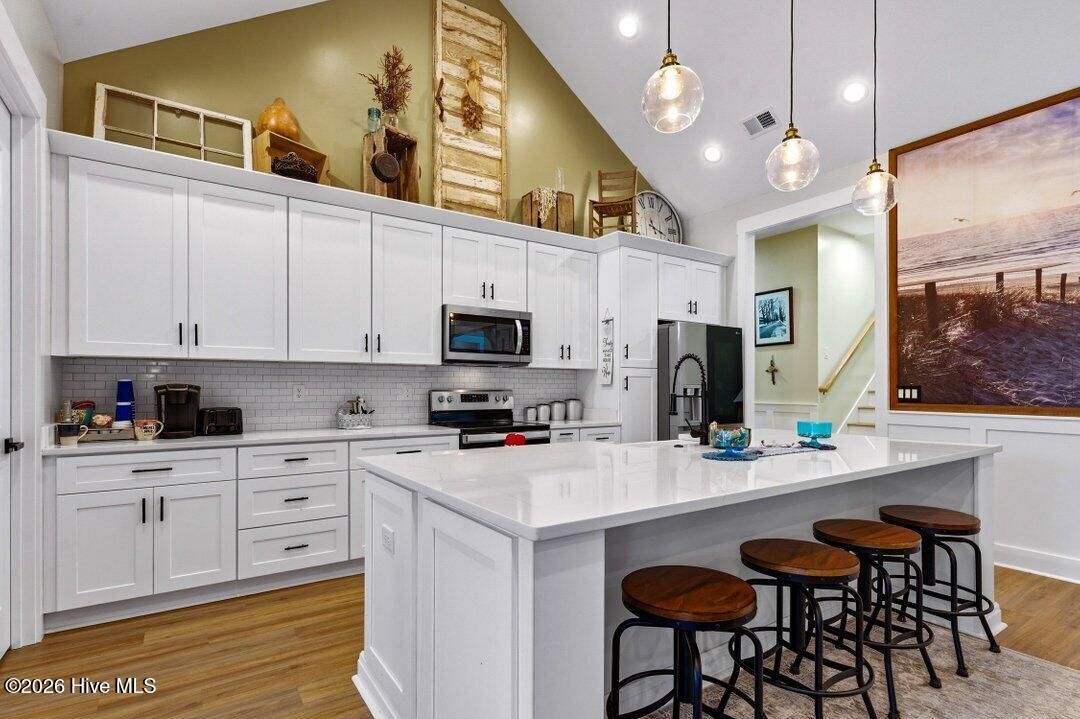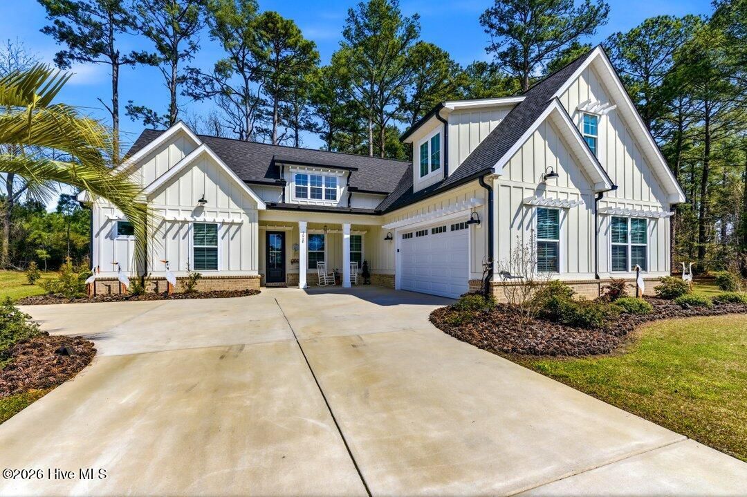 Exquisite Coastal Farmhouse Living in Brunswick Plantation! Experience the perfect blend of modern luxury and historic Southern charm at 1220 North Middleton Drive NW , a stunning residence offering 2,650 heated sq ft, 3625 total, of meticulously designed living space. This barely used, better-than-new home is situated in a desirable Flood Zone X on a wooded lot with no homes to the rear, offering peace of mind alongside many premium upgrades. The exterior features a sophisticated combination of Hardi Board, board and batten style, beautifully complemented by brick accents. The interior is defined by soaring 10-foot first-floor ceilings and a custom ''Coastal Farmhouse'' aesthetic achieved through designer paint and high-end finishes in every room. The living room serves as a breathtaking focal point, featuring vaulted cathedral ceilings, a 100-inch Westinghouse ceiling fan, and a custom fireplace finished with shiplap and a custom mantle. Architectural excellence is showcased through extensive wainscoting installed throughout all bedrooms and living spaces on both the first and second floors. The entry foyer and dining areas are further distinguished by custom-made corbels trimmed with 100-year-old walnut. The interior is further elevated by matching custom ''eye brows'' crafted from walnut, pine, and 150-year-old plantation metal sourced from Charleston, as well as a massive 10x12 mural of Atlantic Beach encased in a seamless black walnut frame. The heart of the home features a gourmet kitchen with white cabinetry, quartz throughout, and LG stainless steel appliances, including a newly installed side-by-side refrigerator. Superior comfort is provided by LVP flooring throughout the main living areas. The master suite is a private retreat boasting a large walk-in closet and a tile shower with a glass enclosure. Exceptional storage and space continue throughout the home, as each guest room features its own walk-in closet, and the second floor hosts a large suite with a full bath, walk-in closet, and a door providing easy access to extensive attic storage. Practical upgrades are found throughout the property, from the oversized side-facing garage featuring a new Hormann Silent Drive opener and two-tone paint with eight-inch base molding to the reinforced garage door with ten additional top-hat rails. Mechanical reliability is ensured by a Carrier 15 SEER heat pump and a hot water heater equipped with a thermal jacket and three new control valves. The exterior of the property is an entertainer's dream, featuring an additional concrete circle drive with intermediate extensions and two professionally landscaped coastal islands that provide a grand welcome. In the rear, a massive ''Grill, Chill, and Sun Bathing'' concrete patio is complemented by a screened-in porch designed with polished white aluminum and no horizontal tubing to ensure unobstructed peripheral views. The home's exterior is further distinguished by gloss black gutters with Diamond Plate Aluminum leaf guards, custom eye brows on all doors and windows, and a comprehensive dusk-to-dawn lighting system on the roof and perimeter walls. With enhanced rear curb appeal and extensive landscaping that reaches the property lines, this home offers a private sanctuary within a prestigious community. Living in Brunswick Plantation means enjoying resort-style amenities, including gated entry monitored 24/7 by security, a clubhouse, residents club, fitness center, dining, indoor and outdoor community pools, tennis and pickleball courts, and more. The Hamptons, the main clubhouse, pool, residents' club, and golf course are just a golf cart ride away. Downtown Calabash, Sunset Beach, and Ocean Isle Beach are minutes away, and the beaches are just a little further. Restaurants, shopping, fishing, golf, and more are right around the corner. If you need more, Little River, Cherry Grove, and North Myrtle Beach are a short drive away. Don't miss out on this truly unique, one-of-a-kin