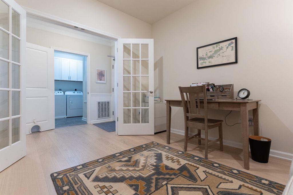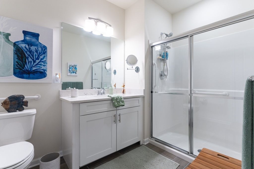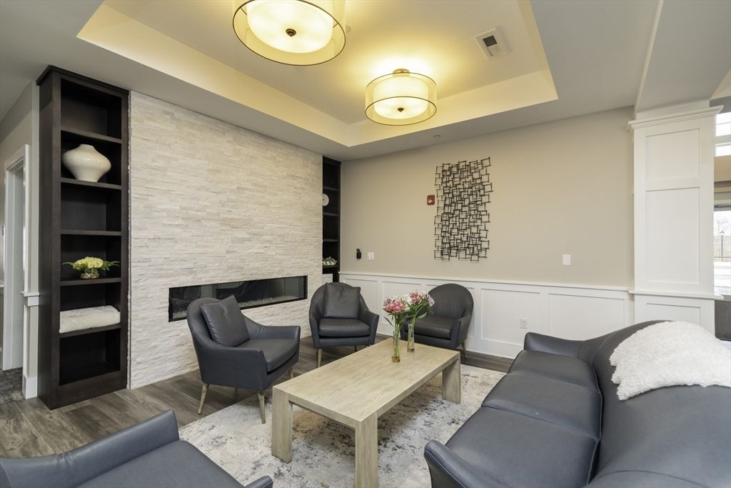 Step into Del Webb at Chauncy Lake, Westborough’s sought-after 55+ community designed for active living! This beautifully-appointed 1-bedroom, 1-bath condo with over 1000 square feet, deeded GARAGE parking and a coveted courtyard view, showcases hardwood flooring and crown molding throughout. The upgraded kitchen features stainless steel appliances, quartz countertops, and upgraded cabinets. A versatile bonus room with French doors makes the perfect home office, den, or hobby space. The spacious primary suite easily accommodates a king-sized bed and offers an en-suite bath plus a walk-in closet. Relax with your morning coffee or unwind at sunset from your private balcony with custom Hunter Douglas shutters. Life here extends beyond your front door: residents enjoy a clubhouse with fitness facilities, gathering rooms, a swimming pool and newly installed pickleball and bocce courts