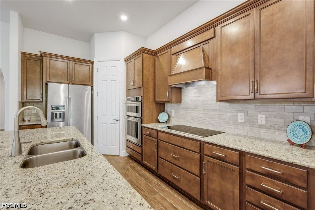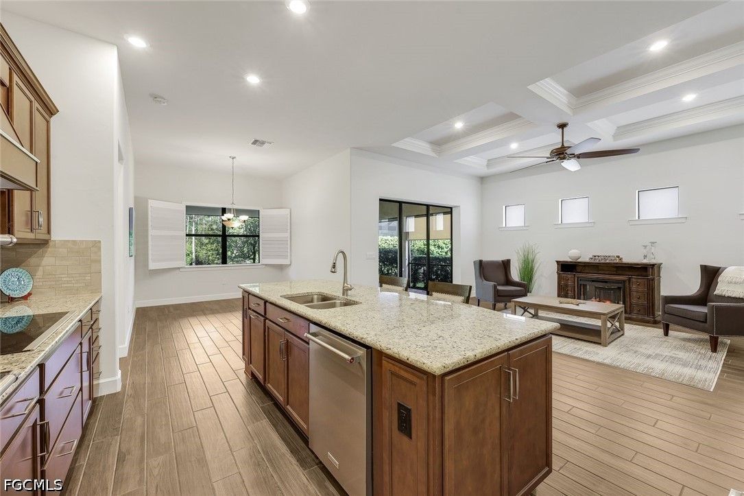 Exceptional 2018 Preserve-View Home in Gated Somerset at The Plantation Your lifestyle of a lifetime awaits! Meticulously maintained Summerwood model with full storm protection plus located in 'X' flood zone so no flood insurance required. Newer home translates to being built with strongest building codes and better insurance rates. No storm history and Sellers insurance is under $1k/year! This move in ready single-family home offers 3 bedrooms, 2 bathrooms plus a spacious den. 2,020 square feet of bright, open-concept living (3,200 square feet overall with extended garage and extended front patio). Situated on a premium lot that backs directly to lush preserve for unmatched privacy and peaceful views. Inside, you’re greeted by gorgeous plank tile flooring, soaring coffered and tray ceilings, crown moldings and elegant plantation shutters. The chef-inspired kitchen is a standout, featuring upgraded granite countertops, a large center island, custom cabinetry, stainless steel appliances, double oven and a generous walk-in pantry. The open great room flows seamlessly, creating a warm and inviting space for family and friends. Step outside to enjoy Florida living at its finest on the extended paver lanai overlooking the preserve, complete with Storm Smart privacy screens. Additional premium features include an extended garage with epoxy flooring, whole-house water filtration system, brand-new professional landscaping, and a charming covered front porch with park-like views. The lifestyle at Somerset in The Plantation delivers unparalleled resort-style living with low HOA fees.The Amenities Center features: tennis(league play), pickleball, two pools, spa, bocce, billiards, party room, fitness center and yoga, landscape maintenance, two annual mulchings, grass cutting, lawn irrigation, Wi-Fi, cable, community activities, Zumba and other floor exercises, library, and meeting rooms - plus direct access to The Plantation’s 18-hole championship golf course (membership optional). Just minutes from Southwest Florida International Airport, Gulf Coast beaches, Gulf Coast Town Center shopping, top dining, and world-class attractions ~ this location truly has it all including great neighbors on both sides! This partially furnished home is truly move-in ready and represents a wonderful opportunity to own in one of Fort Myers’ most desirable gated golf communities. Schedule your private showing today!