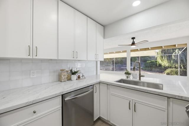 Welcome to this beautifully renovated, bright, airy home in the desirable 7 Oaks 55+ community where you can enjoy low HOA annual fee and a quiet, comforting neighborhood environment. This charming 2 bedroom, 2 bath home has a tastefully remodeled kitchen with new appliances, 2 remodeled bathrooms all tucked away on a private cul-de-sac. The primary bedroom has a large double sided closet and access to the backyard. This approximately 2110 square feet living space includes a large sunroom perfect for lounging, entertaining, home office, to mention but few options, including stunning views of the expansive, low maintenance, peaceful backyard refuge. The lot of about 0.32 acres is perfect for tranquility & entertaining aided by a large covered patio.The oversized garage provides plenty of space for parking, workspace and affords a convenient ladder access to extra storage space in the generous attic. Enjoy resort style living within walking distance in The 7 Oak's Community Center which boasts a heated pool & spa, clubhouse, pickleball, library, game room, fitness center, fully equipped ceramics & woodworking shops. The home is convenient to shopping, dining, medical facilities and the I-15.This home offers a perfect blend of comfort, convenience in a vibrant living community.