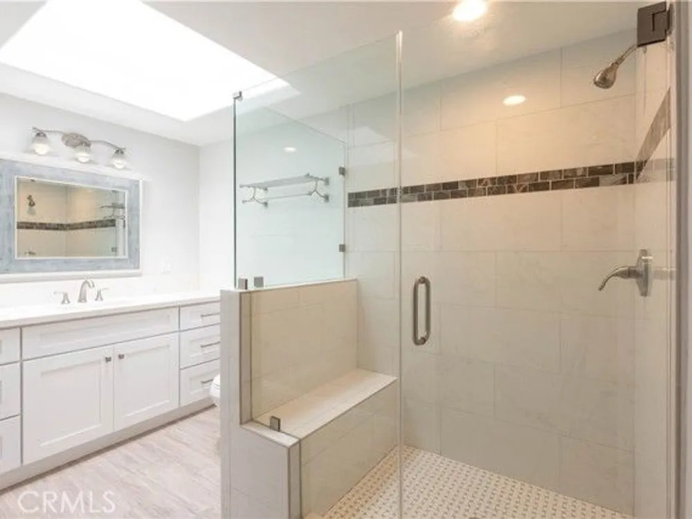 Welcome to your dream home in the highly sought-after Leisure World community! This fully upgraded and thoughtfully remodeled residence offers the perfect blend of comfort, style, and modern convenience. Featuring 2 spacious bedrooms and 2 beautifully updated bathrooms, this home is move-in ready with no detail overlooked. Step inside to find an open-concept living space with new flooring, fresh paint, and designer finishes throughout. The gourmet kitchen boasts white custom cabinetry with inset glass, extra large pantry, quartz counter tops, custom back splash, stainless steel appliances, built-in microwave, dishwasher, bar style dining counter, 9ft ceilings, skylight and and recessed lighting. The HVAC was new in 2019 as well as the dual pane windows. There are two primary suites have been built out with beautifully designed custom showers, walk in closet (in one of them), washer and dryer, sky lights and custom vanities offering a spa like retreat. The expanded front patio has plenty of room for a California living room (outdoors and beautiful). Perfect for both everyday living and entertaining. Enjoy resort-style living with Leisure World’s incredible amenities, including a golf course, swimming pool, fitness centers, social clubs, and 24-hour security—all within a welcoming, active 55+ community. Don’t miss the opportunity to own this stunning, turn-key property where modern upgrades meet relaxed, worry-free living! Carport 58 Space 62 with storage closets. Some of the other amenities at Leisure World include a specialty studios (ceramics, woodworking), multiple clubhouses, an on-site library and computer lab, a library, amphitheater, and various sports courts. There are also convenience-focused services like a free bus shuttle, on-site medical care, a pharmacy and credit union.