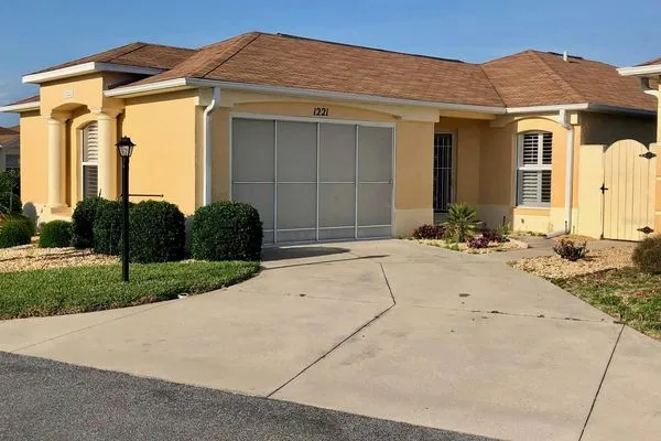 Welcome to your slice of Florida paradise! This well-cared-for 2 bedroom, 2 bath courtyard villa is located in the highly sought-after Villa San Leandro neighborhood in the Village of Santiago. Offering both privacy and convenience, this villa sits on a low-maintenance lot with mature landscaping, giving you more time to enjoy everything The Villages lifestyle has. Inside, an open layout fills the home with natural light. The kitchen is spacious and functional — perfect for preparing meals with friends or savoring a quiet breakfast. The primary suite features a roomy walk-in closet and an ensuite bath, while the enclosed lanai provides a relaxing space for morning coffee or an evening glass of wine. Recent updates bring peace of mind: a new roof (2023), HVAC system (2019), BOND PAID, and low annual CDD fees. The property is located in a low-risk flood zone, which means lower insurance costs and long-term savings. Best of all, this home is just minutes away from championship golf courses, recreation centers, medical facilities, shopping, and dining. Whether you’re seeking a seasonal retreat or a full-time Florida residence, this villa combines comfort, location, and value — and it’s move-in ready today!