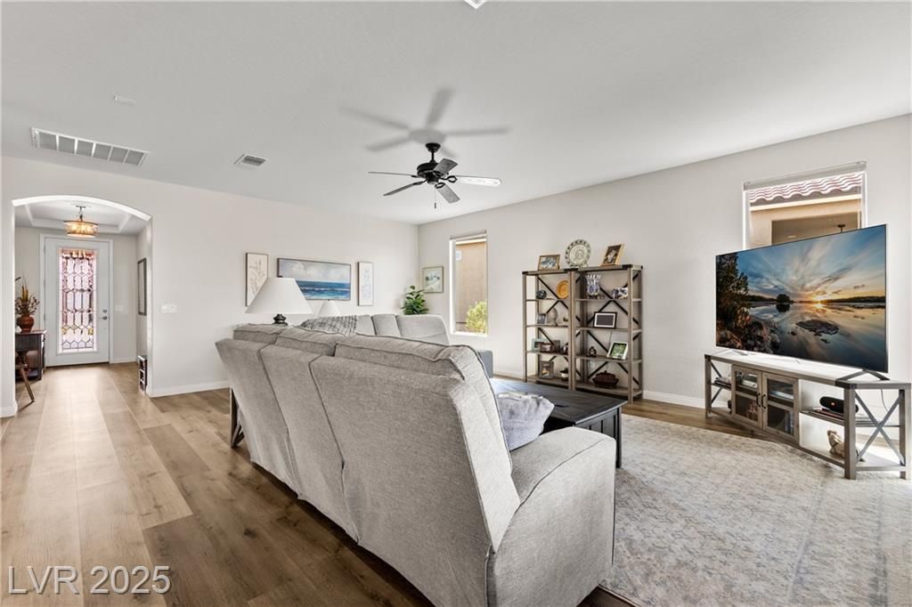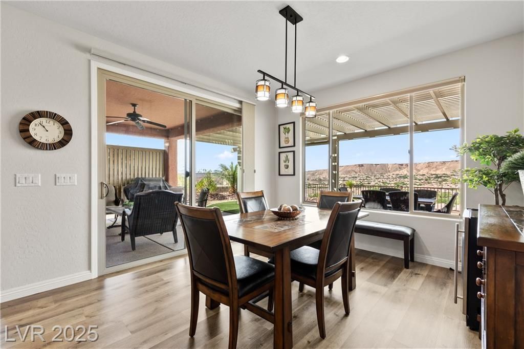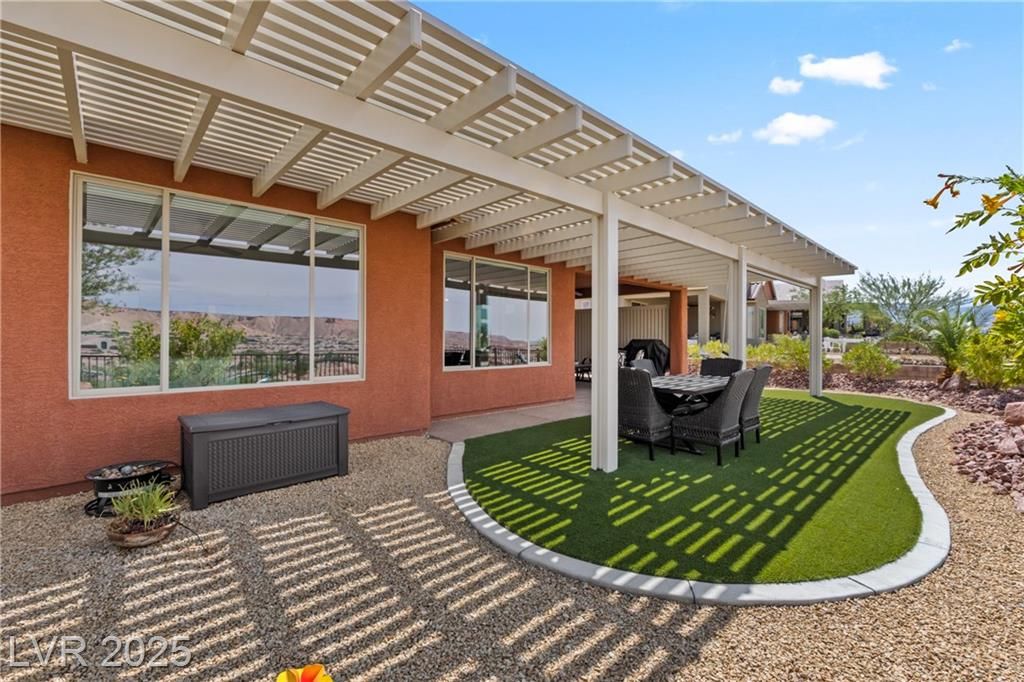 Built in 2021, this 1,828 sq. ft. residence offers 2 bedrooms, 2 bathrooms, & a generously sized room, perfect for a home office, den, or hobby space.The home's curb appeal shines with epoxied exterior concrete, custom landscaping including garbage enclosure, & lush synthetic turf in both the front & rear yards. In the backyard, enjoy year-round outdoor living with an extended pergola covering complete with privacy slats & sunscreen shade, all while taking in elevated western views overlooking Sun City & the golf course. Inside, the home features luxury vinyl plank flooring throughout, with plush carpet in the bedrooms for added comfort & breathtaking views from many of the different living areas & rooms. The gourmet kitchen boasts quartz countertops, a stylish backsplash, updated lighting, & a natural gas stove-a chefs dream. This vibrant community offers a true resort lifestyle with an indoor and outdoor pool, 18-hole putting course, pickleball courts, and bocce ball courts.