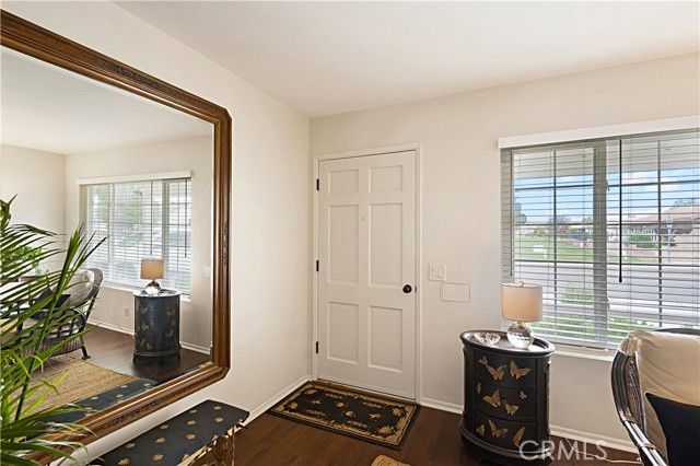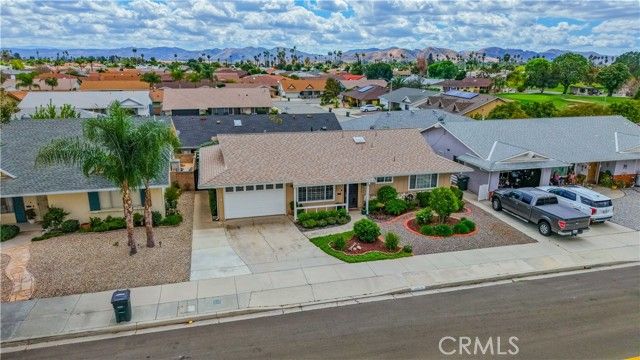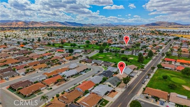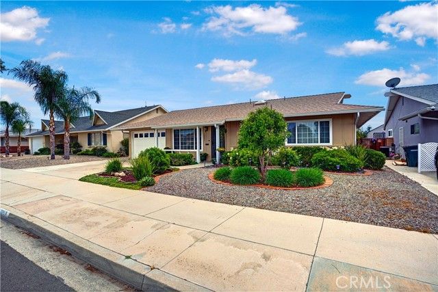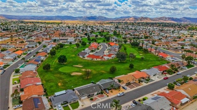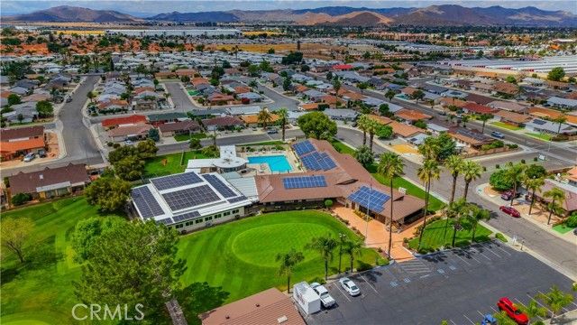 Welcome to desirable 55+ Panorama Village in Hemet, a vibrant golf course community known for its 9-hole golf course, beautifully remodeled clubhouse with kitchen area, and wonderful amenities including a saltwater pool, 3 indoor jacuzzis, billiard room, library, indoor pickleball and shuffleboard courts, dog park, and RV parking access. This beautifully remodeled home offers comfort, style, and golf course views. Inside, you'll find wood flooring in the main living areas, carpet in the bedrooms, and thoughtful upgrades throughout. The spacious primary bathroom features marble flooring, marble countertops, and a porcelain tub/shower. The hall bathroom has been updated with a stand-alone shower and upgraded vanity. The remodeled kitchen is a standout with quartz countertops, self-closing drawers, stainless steel appliances, a farmhouse sink, and recessed lighting. Additional features include dual-pane windows, a dual-pane sliding glass door leading to the sunroom, newer blinds, ceiling fans, rain gutters, a roll-up garage door, covered porch, and a newer roof approximately 4 years old. Enjoy peaceful golf course views and all the benefits of resort-style senior living in this move-in ready home.