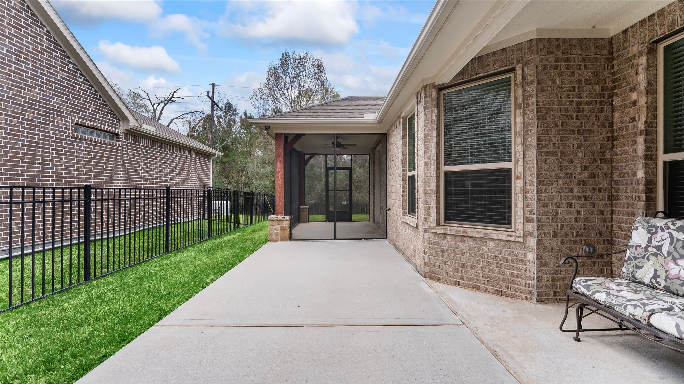 Welcome to easy living in the desirable Villas at White Oak Ranch, a 55+ community offering comfort and connection. Built in 2019, this well-maintained 2-bedroom, 2-bath brick home features stainless steel appliances, including a refrigerator, and a spacious layout designed for everyday living. The primary suite includes an ensuite bath with a walk-in shower, plus private access to a screened-in patio. The secondary bathroom bathtub has a whirlpool massage system. Enjoy a fully fenced backyard with wrought iron fencing that backs to a peaceful water feature and greenbelt, providing no rear neighbors. Additional highlights include a 2-car garage and outdoor patio. Community amenities include a clubhouse, swimming pool, gardening area, and more. A wonderful opportunity for low-maintenance living in a welcoming community. 20-minutes from The Woodlands for fine dining and shopping.