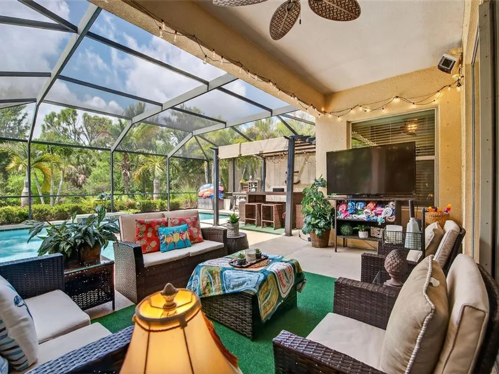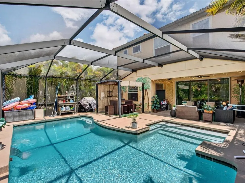 ?? Major Price Reduction! Motivated Seller – Don’t Miss This Rare Opportunity! This beautifully maintained home in Grand Palm just became an even better deal! With a new lower price and a low-interest assumable loan, this is your chance to own a stunning Florida retreat for less than renting in many cases. Situated on a quiet corner lot with a large open green space across the street and a private wooded preserve behind the special custom Pool, this property offers the perfect blend of privacy, space, and resort-style living. The lush landscaping surrounding the custom pool and lanai creates a secluded oasis ideal for relaxing or entertaining. Step inside to find a bright, open-concept living area that seamlessly connects the living room, dining nook, and chef’s kitchen—featuring a large center island, gas range, and ample cabinetry. Triple pocket sliding glass doors open to the lanai, expanding your living space and letting the Florida sunshine pour in. Downstairs also includes a flexible bonus room, perfect for a home office, study, or media room, plus a convenient half bath for guests. Upstairs, enjoy a spacious master suite with en suite bath, two additional bedrooms, a full laundry room, and a versatile loft area that can serve as a playroom, guest suite, or second office. The extended garage offers extra storage and a 220V outlet for EV charging, while active solar panels help lower your energy bills month after month. Living in Grand Palm means access to world-class amenities, including: ??? 3 resort-style pools & splash park ?? Fitness center & clubhouse ?? Pickleball, tennis, basketball courts & more ?? Kayaking, walking trails, and dog parks All of this, just minutes from Wellen Park, CoolToday Park, shopping, dining, and the award-winning Gulf beaches. ? A motivated seller, an assumable low-rate loan, and a prime location—this one won’t last long! Schedule your showing today and make your Florida dream home a reality.