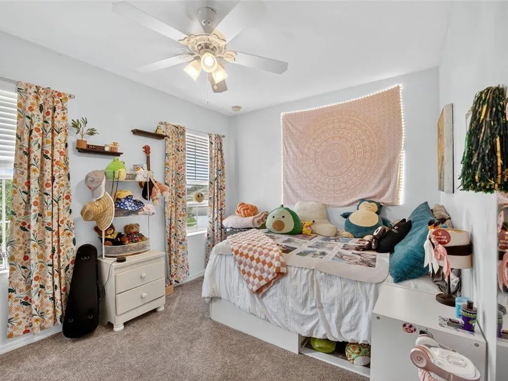 - Ceiling Fan(s), Eat-in Kitchen, High Ceilings, Open Floorplan, Upper Level Primary, Solid Surface Counters, Solid-Wood Cabinets
