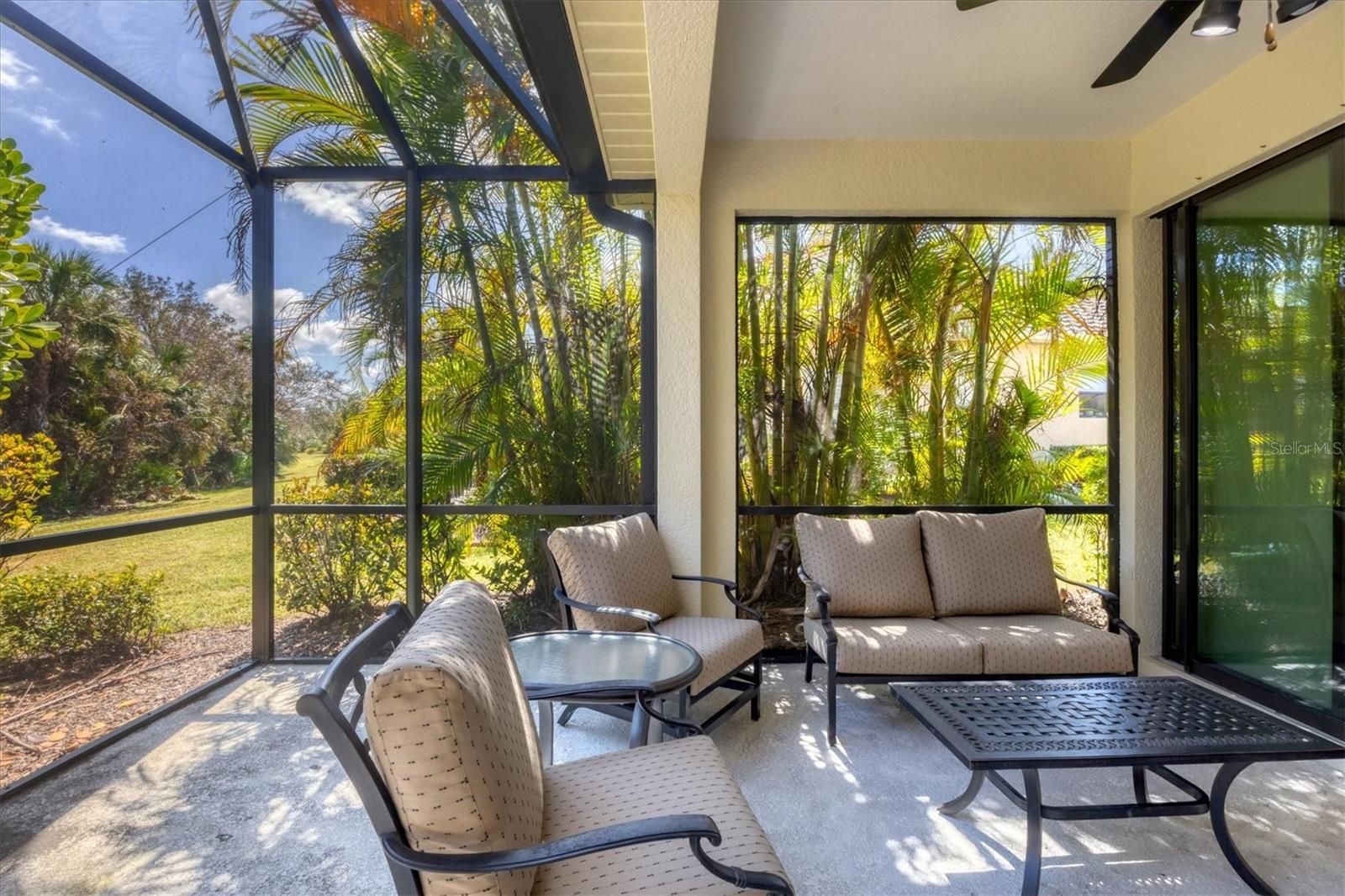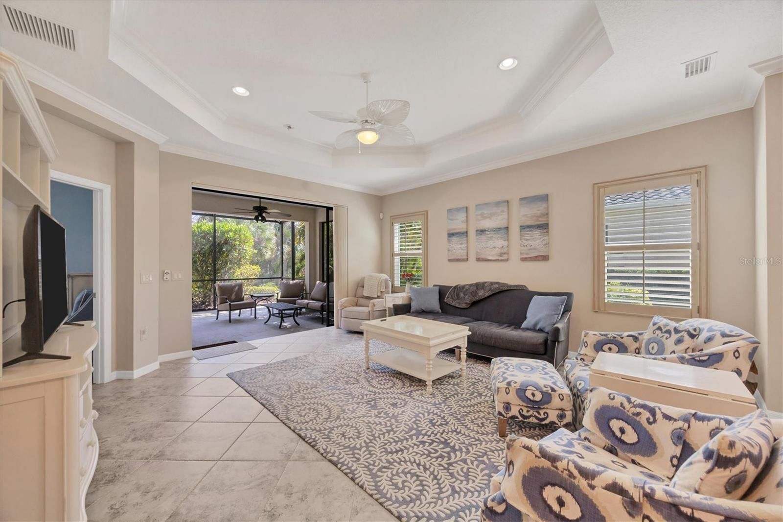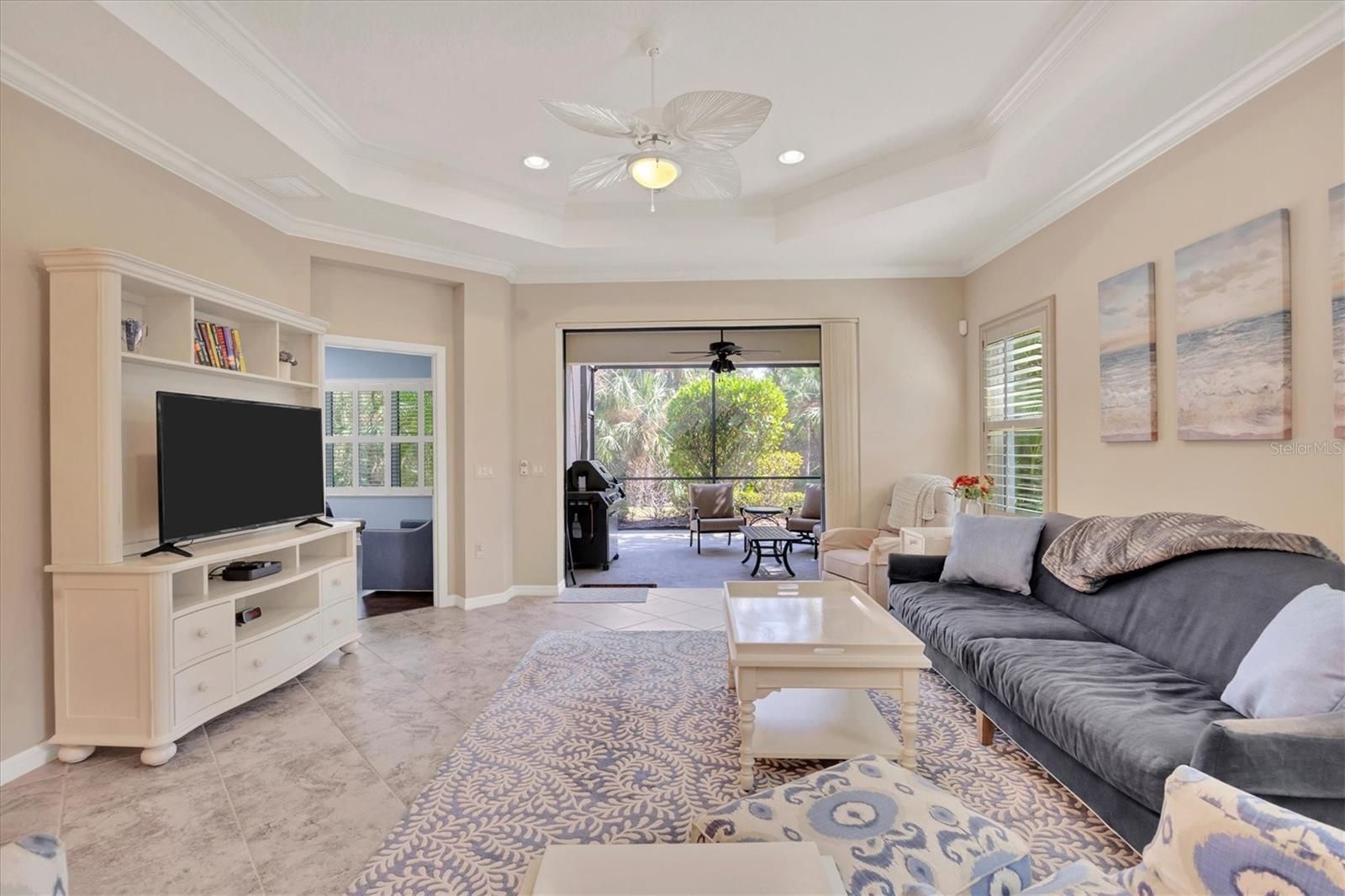 Welcome to your dream retreat in the exceptional gated Grand Palm community! This spacious, maintenance-free 2-bedroom, 2-bath home with a versatile den combines comfort and convenience. Step into an open and inviting layout featuring a gourmet kitchen with Corian countertops, high vaulted ceilings, and a great room perfect for entertaining. The main living areas and bathrooms showcase elegant tile floors, while luxury vinyl adds warmth to the bedrooms and den. Enjoy your mornings or evenings on the expansive, screened-in lanai overlooking the lush surroundings. Fully furnished, this home is move-in ready for you to start enjoying immediately. Beyond your doorstep, Grand Palm offers an impressive array of resort-style amenities. With two clubhouses, a resort-style pool, lap pool, spa, fitness center, and gathering hall, there's something for everyone. Sports enthusiasts can enjoy tennis, pickleball, and miles of scenic walking trails, while the pier offers a peaceful spot for fishing. A playground, dog park, and numerous other recreational spaces make this community truly unique. Experience the best in maintenance-free living at Grand Palm!