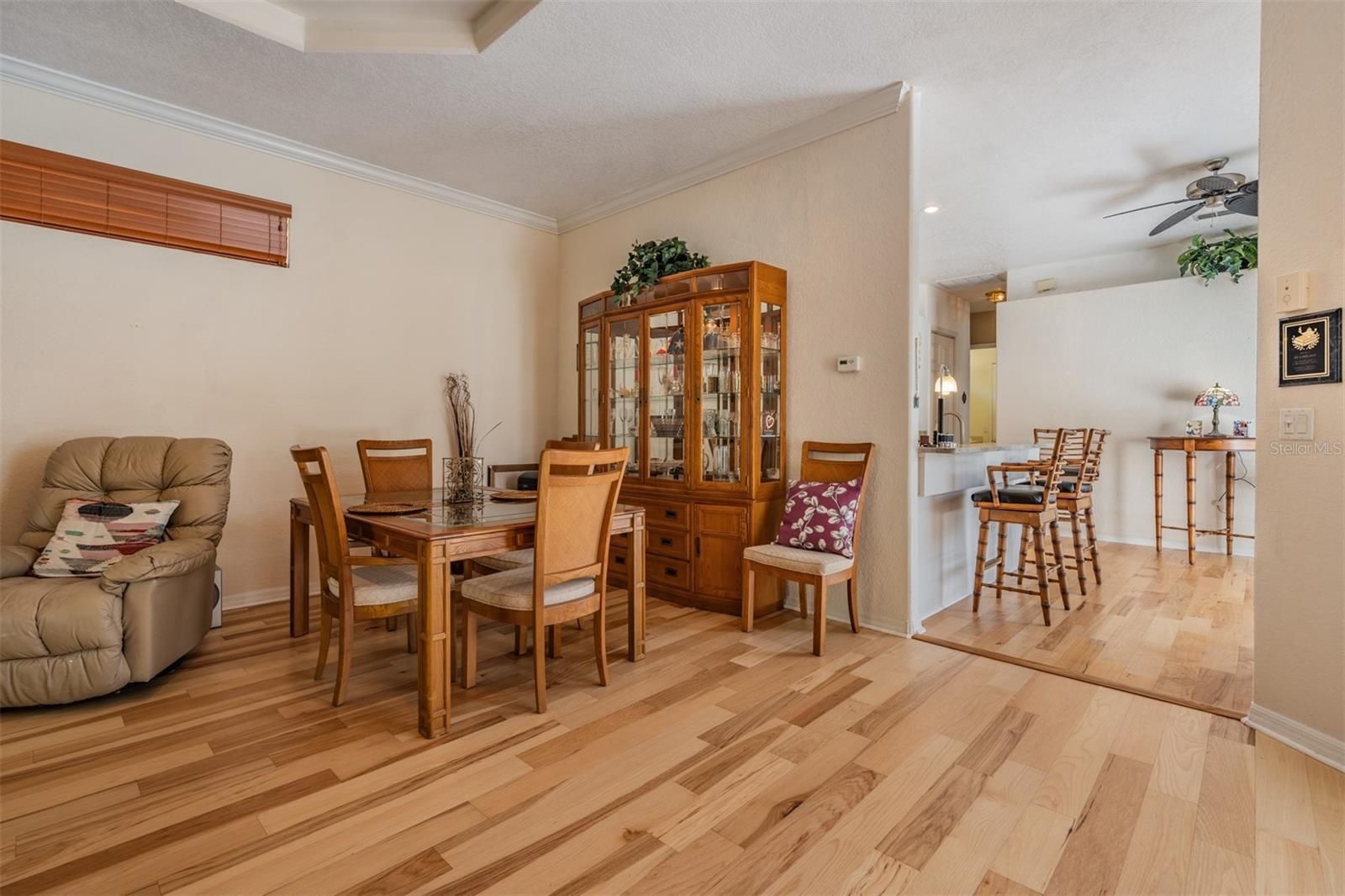 - Ceiling Fan(s), Crown Molding, Eat-in Kitchen, High Ceilings, Living/Dining Room, Open Floorplan, Solid-Wood Cabinets, Split Bedrooms, Stone Counters, Thermostat, Walk-In Closet(s), Window Treatments