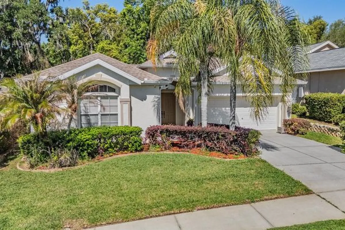 Experience resort-style living every day in Lake Jovita Golf & Country Club in this beautifully updated Palmwood cabana-style home, designed for both relaxation and entertaining. Enter through double doors into your own private courtyard oasis, with arched accent walls and tropical potted landscaping. The soothing sound of a trickling fountain into the spill over Spa sets the tone for peaceful mornings, casual gatherings, or evenings spent grilling on the screened lanai. Inside, double glass doors lead to a spacious great room and dining area, highlighted by a contrasting coffered ceiling. Stunning Engineered hardwood floors greet you and are throughout common areas with sliding glass doors to a second screened lanai, overlooking your private backyard with conservation views! Great place to enjoy morning coffee with birds singing and trees swaying in the breeze. This unique floor plan allows every room to open directly to the courtyard, creating a seamless indoor-outdoor living experience. The owner’s retreat is light, bright and inviting, featuring a double window to take in the conservation views, a cozy sitting area with courtyard views, and a luxurious ensuite bath complete with soaking tub, walk-in shower, dual vanities, private water closet, and an oversized walk-in closet. Guest bedroom and bath are thoughtfully positioned on the opposite side of the home for added privacy. At the heart of the home, the kitchen offers generous white cabinets, solid surface countertops, stainless sink, breakfast bar, and transom windows that fill the space with natural light. The adjacent dinette area opens to the courtyard for effortless indoor-outdoor dining. A standout feature is the detached flex space apartment—perfect as a home office, third bedroom, in-law suite, gym, studio, or private guest retreat—with its own entrance, large closet and full bath. This move-in-ready property features over $40,000 in major updates, including a New Stainless Steel Appliance package (2026), freshly painted interior and exterior & cool deck (2025), Samsung Washer & Dryer (2025), New Architectural shingle Roof (2024), new exterior & pool lighting and new screens on pool lanai and back screened room. Additional highlights include an interior laundry room with utility sink and storage, and a two-car garage with side yard access PLUS a separate 3rd bay garage for your golf cart, small car or for extra storage. Enjoy the Lake Jovita lifestyle with low county taxes, low quarterly HOA and NO CDD fees. Optional memberships provide access to exceptional amenities, including two championship golf courses, fitness center, junior Olympic pool, clubhouse dining, social events and Har-Tru clay tennis courts. Parkside amenities are included in the low quarterly HOA boasting tennis & pickleball courts, walking trails with fitness stations, 2 dog parks, playground, covered picnic area with grills and open fields... all within a secure Guard-gated community. Conveniently located just north of Tampa with easy access to major highways, shopping, dining, hospitals, universities, airports, Tampa, St Pete, Ocala, Orlando and Florida’s beautiful beaches. CALL TODAY and discover why this IS the perfect place to BE!