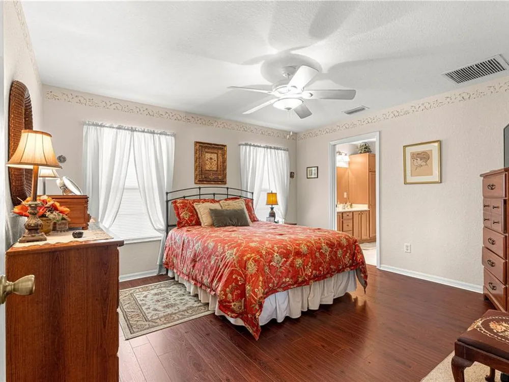 If you are looking for a pristine home, HERE IT IS. This Gold Elevation Sycamore Model is MOVE IN READY!! Beautiful community with 4 Pools, Hot Tub, great softball field, newly equipped exercise facility, golf course with beautiful club house. Many other clubs and activities for your enjoyment. This wonderful home has Manufactured Hard Wood Flooring, high ceilings and large windows. This beauty has a great eat in kitchen and Dining area. The primary bedroom has a beautiful walk-in shower and walk-in closets. The Villages is just 5 minutes away for your enjoyment, with many restaurants, shops, churches and stores. ROOF REPLACED IN 2020 AND THE AC REPLACED 2016. THIS IS AN OUTSTANDING HOME JUST WAITING FOR ITS NEXT OWNER. COME SEE IT.............YOU WILL LOVE IT