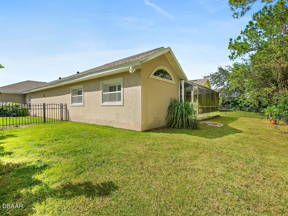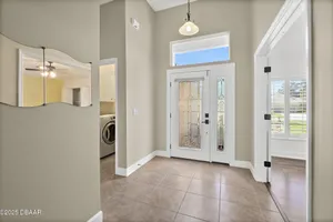 Located within the highly sought-after, guard-gated community of Plantation Bay, this exceptional residence offers a captivating blend of elegance, style, and comfort. This 3 bedroom, 2 bath, 3 car garage home perfectly encapsulates true, effortless Florida living. The interior showcases an appealing color palette and thoughtful finishes throughout. Volume ceilings and an expansive wall of windows flood the main living areas with abundant natural light, creating a bright, welcoming atmosphere. The spacious kitchen, complete with ample storage and a charming breakfast nook, flows seamlessly into a designated flex room or office, offering versatile space for your work or hobbies. The expansive owner's suite is a private retreat featuring a tray ceiling and attached en suite bathroom. Here, you'll find a dual-sink vanity, a step-in glass shower, and a spacious walk-in closet. Two additional bedrooms and a full bath provide ideal comfort and privacy for family or guests. Step outside to - unwind in the screened lanai that backs to a private preserve. For ultimate peace of mind, the roof was replaced in 2022, ensuring a maintenance-free start to your new lifestyle. Discover your piece of paradise in Plantation Bay, one of Florida's premier private, guard-gated communities. Plantation Bay is a distinguished, golf cart friendly community and is known as one of the best private golf communities in Florida, with 45 holes of Championship golf and immaculate conditions from tee-to-green. Conveniently located to area beaches, shops, restaurants, and parks and offers multiple clubhouses, fitness center, lighted tennis and pickle ball courts, stunning resort style pool and cabana bar and a brand-new state of the art 30-million-dollar club house. Memberships are optional. Enjoy living the Florida lifestyle in one of the best neighborhoods around!