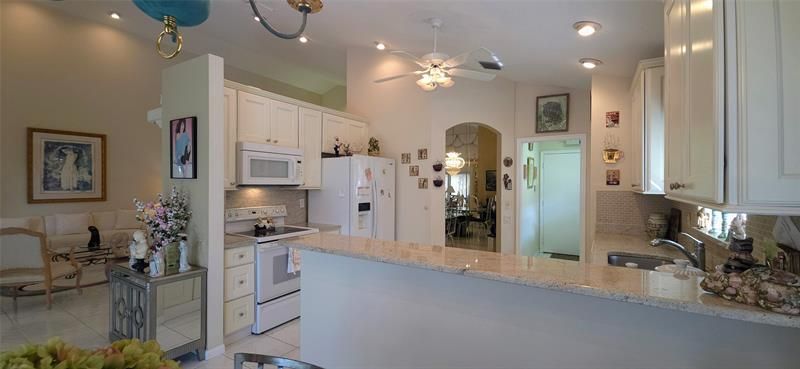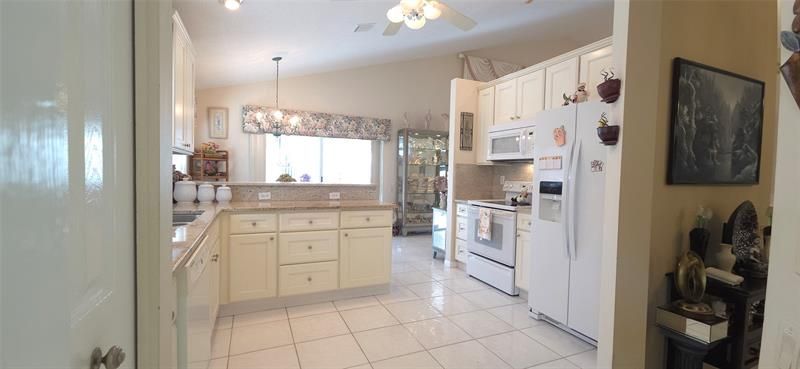 Welcome to this elegant home, where comfort meets style in every detail. Step inside to soaring vaulted ceilings that creates an open, airy ambiance throughout the main living spaces. The beautifully updated kitchen features modern finishes, sleek countertops, and plenty of storage—perfect for everyday living or entertaining. Just beyond the main living area, a spacious glass-enclosed Florida room offers the ideal bonus space to relax, work, or gather year-round. From here, enjoy a stolen lake view that adds a touch of tranquility and charm to the home’s atmosphere. Located in a desirable gated community with resort-style amenities and activities. Enjoy access to a fabulous clubhouse, and guard gated entry. This home is ready to welcome its next owner.