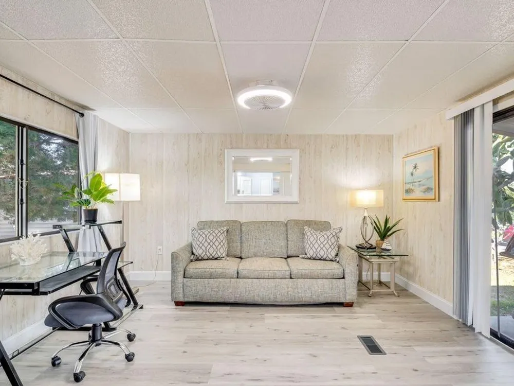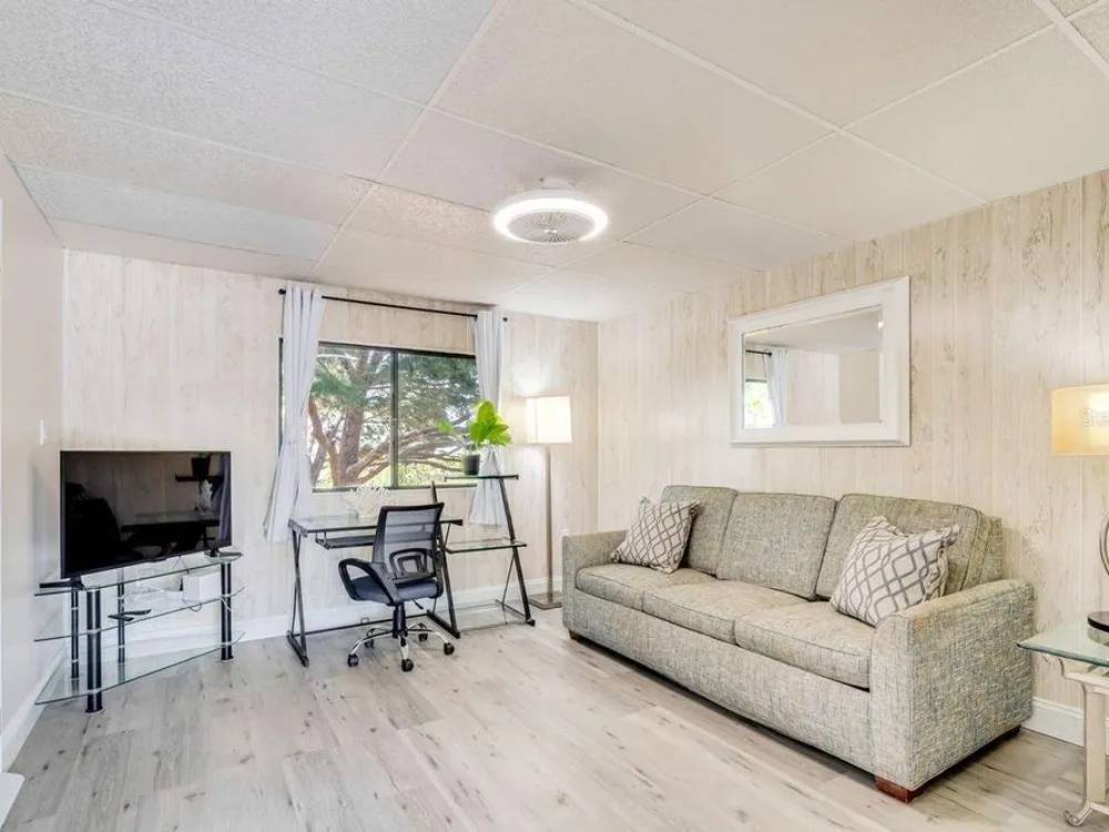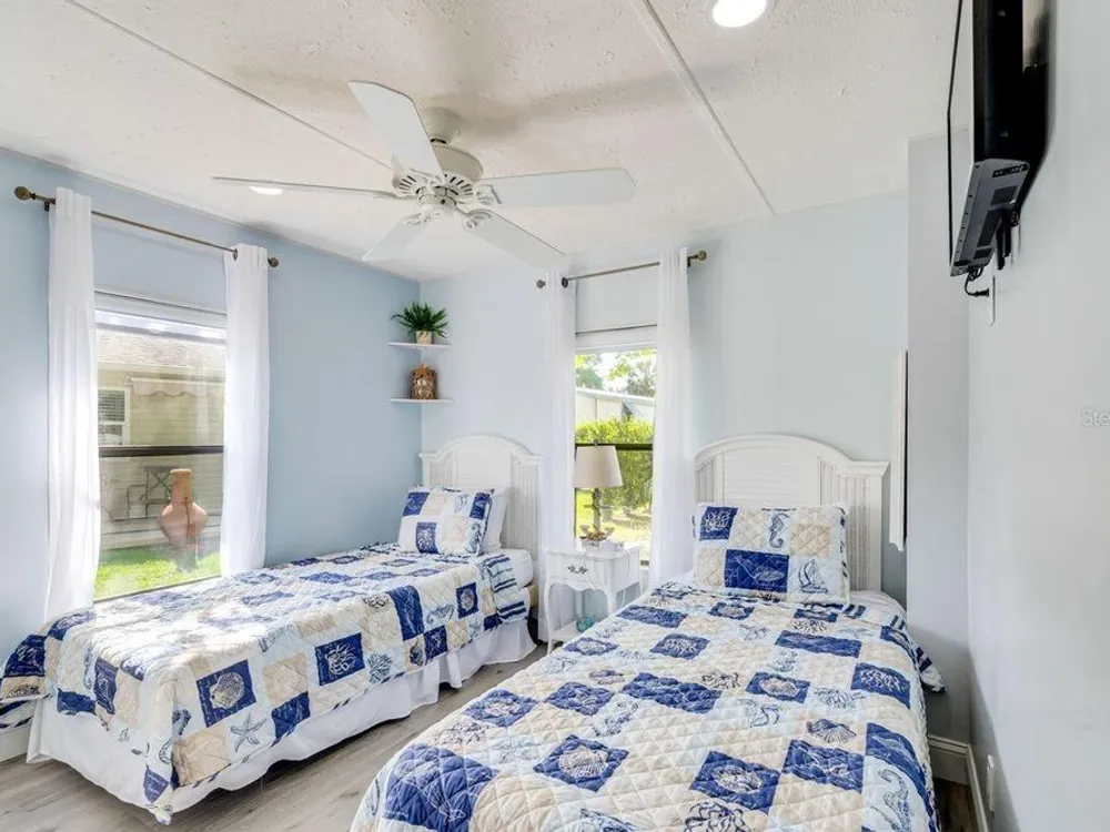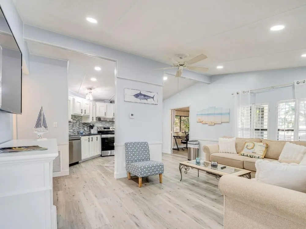 Turnkey Vacation Retreat in The Villages! Welcome to this beautifully renovated 2 bedroom, 1.5 bath home with an additional office. It is conveniently located near both Spanish Springs and Lake Sumpter Landing. Whether you're looking for a seasonal escape, full time residence or income-producing property, this property is move-in ready and offers all the comforts of home. Step inside this fully furnished home to find quality decor, tasteful furnishings throughout, a fully equipped kitchen complete with pots and pans, dishware, glassware, silverware and all linens included-making this the ultimate turnkey property. The office provides additional space for work or hobbies or an additional guest room complete with a queen-size sleeper sofa . The open layout of this home offers plenty of room to relax and entertain. It has been recently renovated with new flooring, fresh paint, new lighting, fans, closet doors and so much more . giving the home a bright, modern feel. The kitchen shines with brand-new appliances, while the laundry room area features a new washer and dryer. The bathroom boasts a custom-tiled shower with modern sliding glass doors. The living room has an elegant tropical feel enhanced by custom Bahama shutters. Living in The Villages means you'll enjoy an unmatched lifestyle complete with Championship golf courses, resort-style pools, hot tubs, activity centers and daily events that keep this community vibrant. With the right offer, a golf cart is also included with the purchase so you can explore everything The Villages has to offer with ease. Don't miss this opportunity to own a vacation-ready home in one of Florida's most sought-after communities.