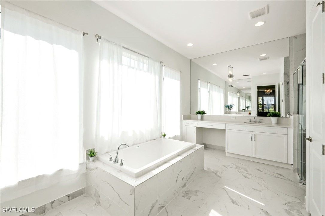 Welcome to refined, resort-style living in the prestigious 55+ community of Valencia Trails. This exceptional new construction residence blends sophisticated design with modern convenience, offering three well-appointed bedrooms, three elegant baths, and a versatile den ideal for a home office, media room, or guest retreat. The light-filled, open-concept floor plan is designed for effortless living and entertaining. At the center of the home, the chef’s kitchen impresses with premium appliances, sleek quartz countertops, and a generous island perfect for casual dining or hosting friends. The spacious great room extends through expansive sliding glass doors to a covered lanai, revealing a private 30-foot lap pool with spa—an inviting space to unwind or stay active year-round. The serene primary suite serves as a true retreat, complete with a spa-inspired bathroom and expansive walk-in closets. Two additional guest suites, each with a dedicated bath, ensure comfort and privacy for visitors. Throughout the home, #1 grade hardwood flooring, striking Art Deco–inspired lighting, and an epoxy-finished garage elevate both style and function. A robust 300-amp electrical system supports up to three electric vehicles, catering to today’s modern lifestyle. Offered unfurnished and ready for your personal touch, this home is your opportunity to create a space that reflects your vision. As a Valencia Trails resident, enjoy world-class amenities including a grand clubhouse, resort and lap pools, pickleball and tennis courts, a cutting-edge fitness center, scenic walking trails, and a vibrant calendar of social events. Discover exceptional Naples living where luxury, comfort, and community converge.
