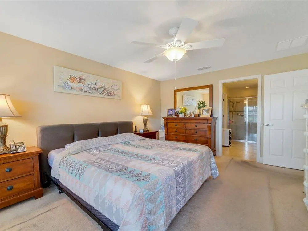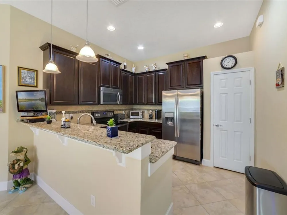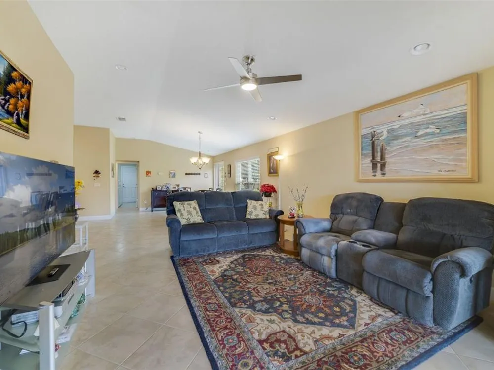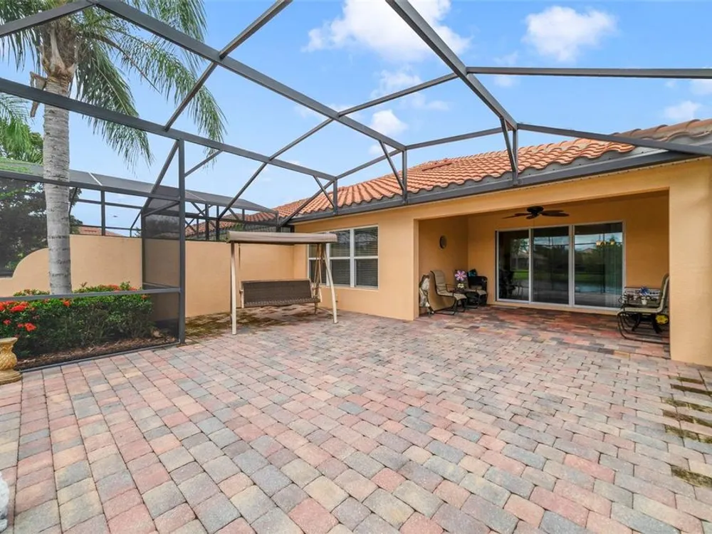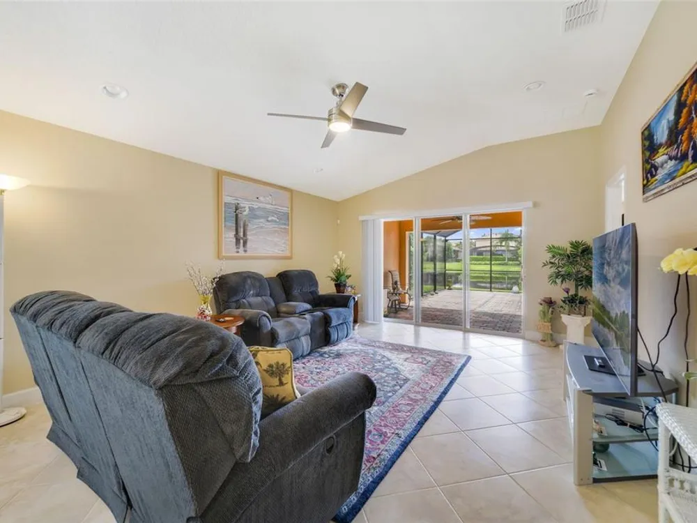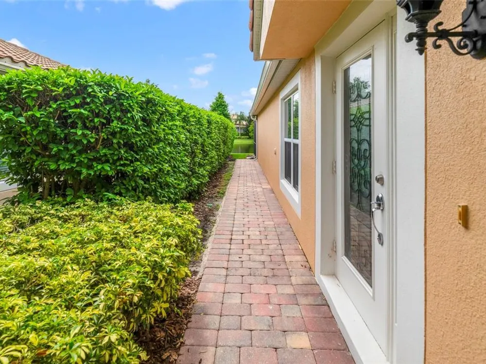 Welcome Home! This GORGEOUS turn-key WATERFRONT home is ready for you. Tucked away in a BEAUTIFUL PERSON-GATED community is perfect for anyone looking for a wonderfully cared-for community. As you make your way into this community, you will immediately notice the WONDERFULLY MANICURED COMMUNITY of VILLAGEWALK! As you make your way around, notice the green space, walking trails, and the wonderful waters that make this such a unique community. As you pull up to the home, you will see the TILE ROOF. Make your way into the home, and your first observation will be the tile set on a diagonal that is throughout all the living space. BRAND NEW INSTALLED CARPET 9-26-2025. From the living room and the dining area, as well as the HUGE SCREENED EXTENDED Patio, you will see the wonderfully calming water view! The kitchen features GRANITE countertops and 42" cabinets, and stainless steel appliances. The Primary bedroom is a large space that also offers a WONDERFUL water view. The Primary bath features double sinks, a walk-in closet, a walk-in shower, and a separate commode. The other 2 bedrooms are toward the front of the home and give you a little separation if desired. The FANTASTIC view in the back has been improved with the LARGE SCREENED PATIO extended out, for when you come home after a long day you have a place to begin to wind down. There is NOTHING not to love about this well-cared-for home. The sellers are the original owners and have taken great care of the home for the next owners. Shopping, the airport, restaurants, and fun are just around the way from this centrally located community. The 417 expressway is less than 5 minutes away. WELCOME HOME!