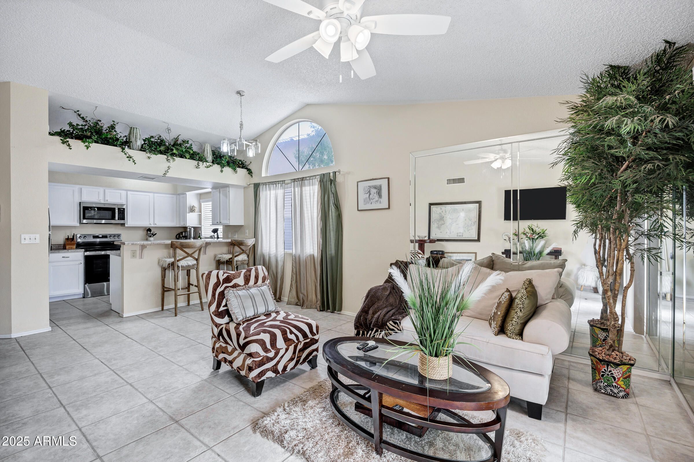 Single level home in the heart of Ahwatukee! Full HVAC system and roof replaced in October 2025! Interior painted throughout including ceilings, doors, trim and garage in October 2025. Pool size back yard! 3 bedrooms and two bathrooms. Open kitchen - family room floor plan! Kitchen boasts trendy white cabinetry with brushed nickel hardware, cabinet pantry, breakfast bar, 2025 stainless steel refrigerator and range, newer stainless steel dishwasher, microwave and counter tops. Soaring vaulted ceilings throughout including the bedrooms! 2025 Arcadia sliding glass door from the family room to the extended covered back patio. Back patio posts replaced 2025. Dining area light fixture and ceiling fans in the family room and primary suite replaced in 2025. New supply lines at the primary bathroom sinks. Primary suite has a walk in closet, dual sinks in the bathroom and its own exit to the back yard. Tile flooring throughout the home with carpet only in the bedrooms! Low maintenance desert landscape and hardscape in the front and back yards. Close to shopping, restaurants, golf, hiking, and schools! All facts and figures to be verified by the buyer or buyer's representative.