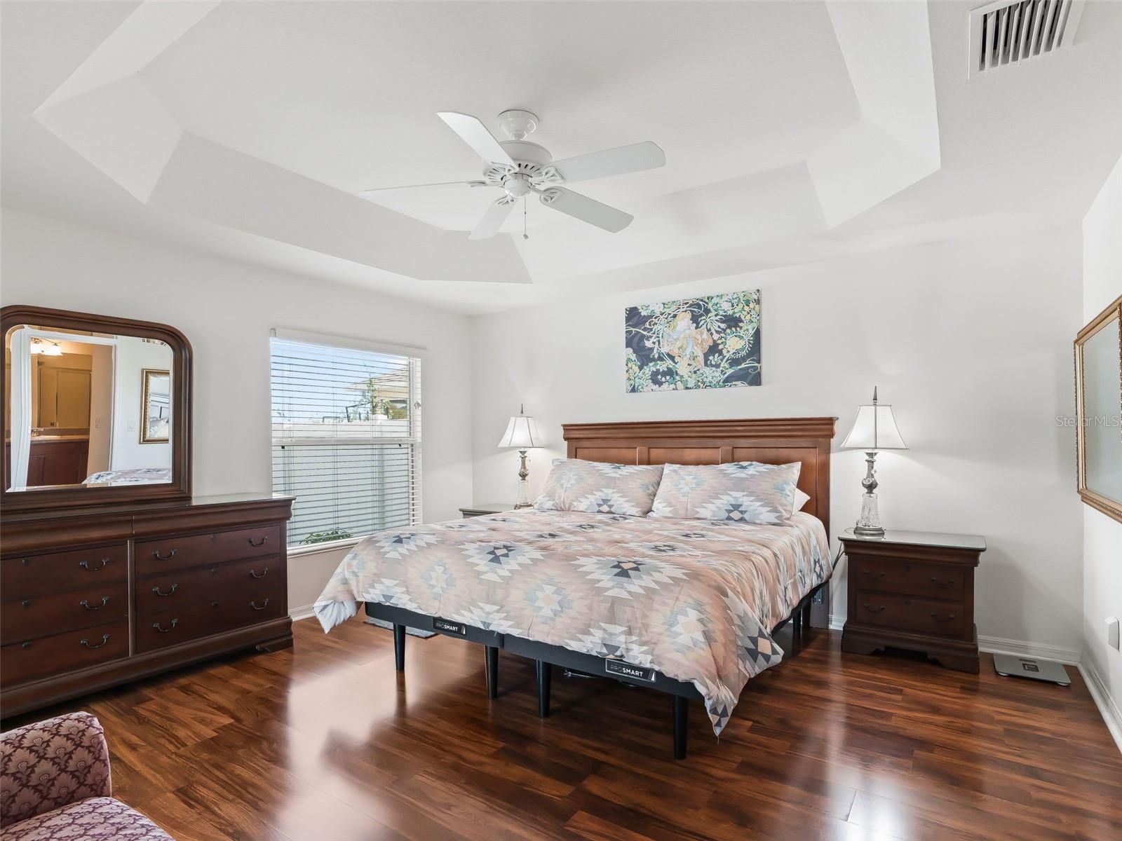 - Ceiling Fan(s), High Ceilings, Open Floorplan, Main Level Primary, Solid-Wood Cabinets, Split Bedrooms, Thermostat, Tray Ceiling(s), Vaulted Ceiling(s), Walk-In Closet(s), Window Treatments