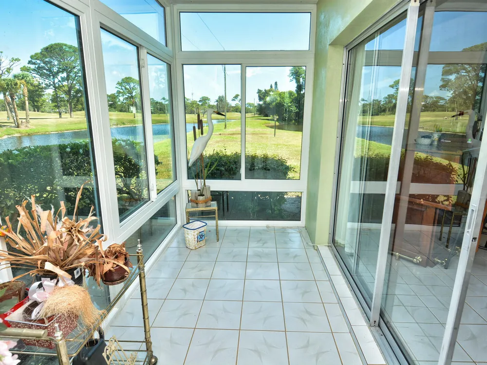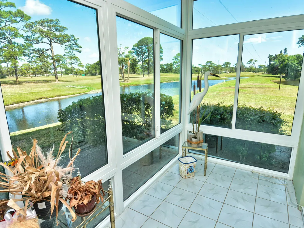 Best location in all of Vista Del Lago! This first floor 2bedrm 2bath floor plan has views from every window...lakes, golf course, green space.Enjoy the corner location with your enclosed lanai facing the golf course all year long. All new impact windows, Tile floors throughout. Updated white kitchen with pass-thru to open dining & living rooms. Baths have updated vanities. Murphy bed in guest bedroom can stay. A/C replaced in 2019 and more. No renting for first 2 years, no commercial vehicles, trucks or motorcycles. Vista Del Lago is an active 55+ community with clubhouse, pool, workshop, library. lush landscape and walking paths in the Stuart/Jensen Beach area. Adjacent to North River Shores public golf course. Convenient location close to Treasure Coast Mall, restaurants, entertain