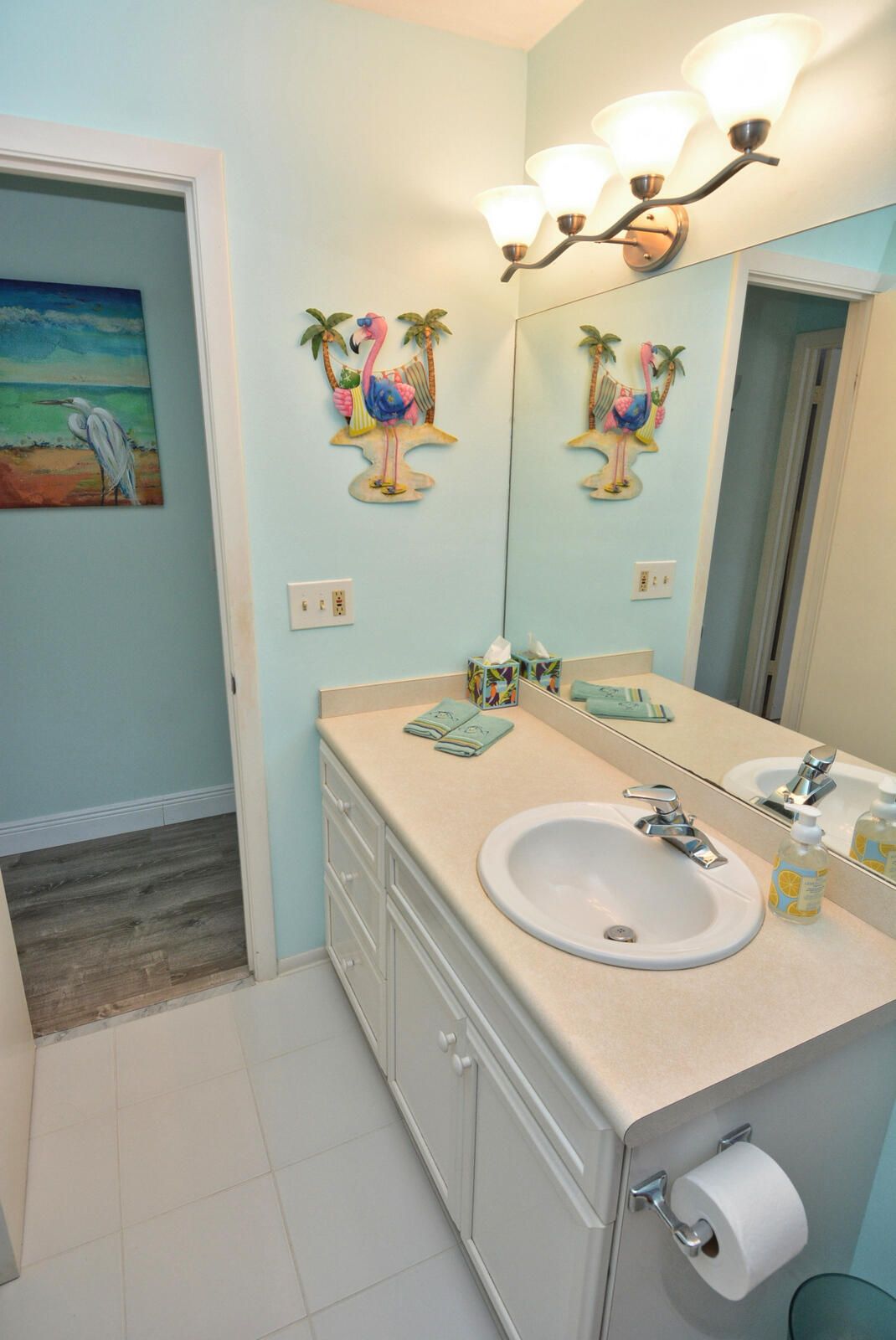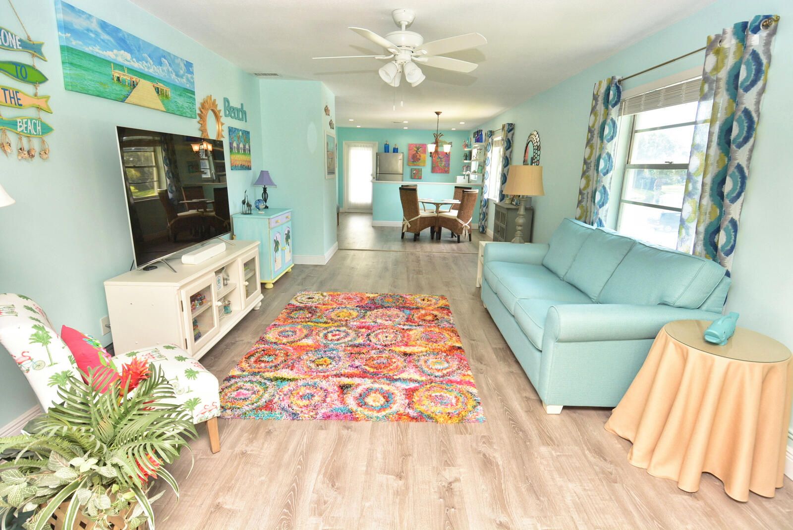 Florida vibes! This 2nd Floor Corner Condo encourages you to relax year-round on your enclosed lanai, perfectly positioned to take in sweeping views of the adjacent North River Shores Golf Course. Enjoy this beautifully maintained 2-bedroom, 2-bath condo with it's updated, open-concept kitchen, dining and living areas, Inside, you'll find laminate floors throughout and updated vanities in both bathrooms. Vista Del Lago is a vibrant 55+ community offering a resort-style lifestyle with a clubhouse, heated pool, library, workshop, and picturesque walking paths set among lush tropical landscaping. Located just minutes from Treasure Coast Mall, Jensen Beach, restaurants, and entertainment, this is Florida living at its best! Please Note: No rentals during the first two years of ownership. No