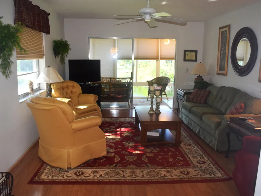 Outstanding bargain! This is Vista Del Lago's largest sq ft available including 2bedrooms 2 Baths & expansive lanai that covers the entire back of the condo with custom Levolor shades on the updated sliding windows & white tile floors. This 'B' floor plan features extra storage and access to the lanai with it's fantastic views of the lake from the living room and main bedroom suite with a W/I closet. The kitchen and both bathrooms were updated with cabinets, counters & tile floors. Also updated wood laminate floors brighten up this corner location. Perfect assigned parking spot is right next to the walkway. Vista Del Lago is an Active 55+ community in the Stuart/Jensen Beach area. Adjacent to The Shores of North River Golf Club. Conveniently located close to TC Mall, restaurants, and