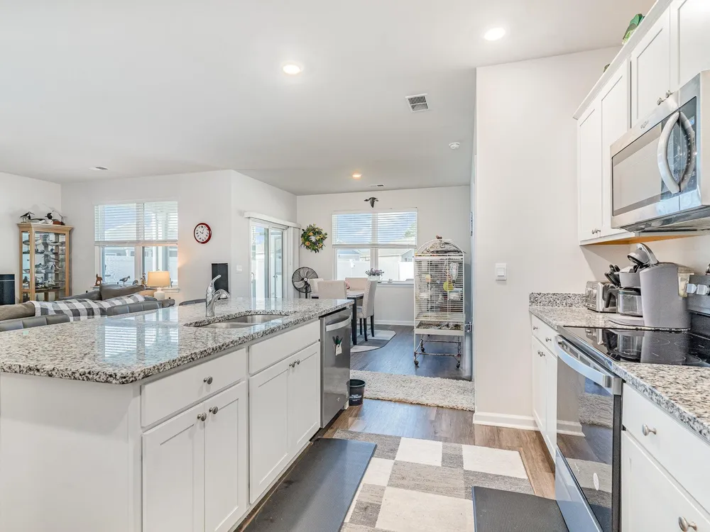 - Attic Access, Pull Down Attic Stairs, Permanent Attic Stairs, Split Bedrooms, Bedroom on Main Level, Entrance Foyer, Kitchen Island, Stainless Steel Appliances, Solid Surface Counters