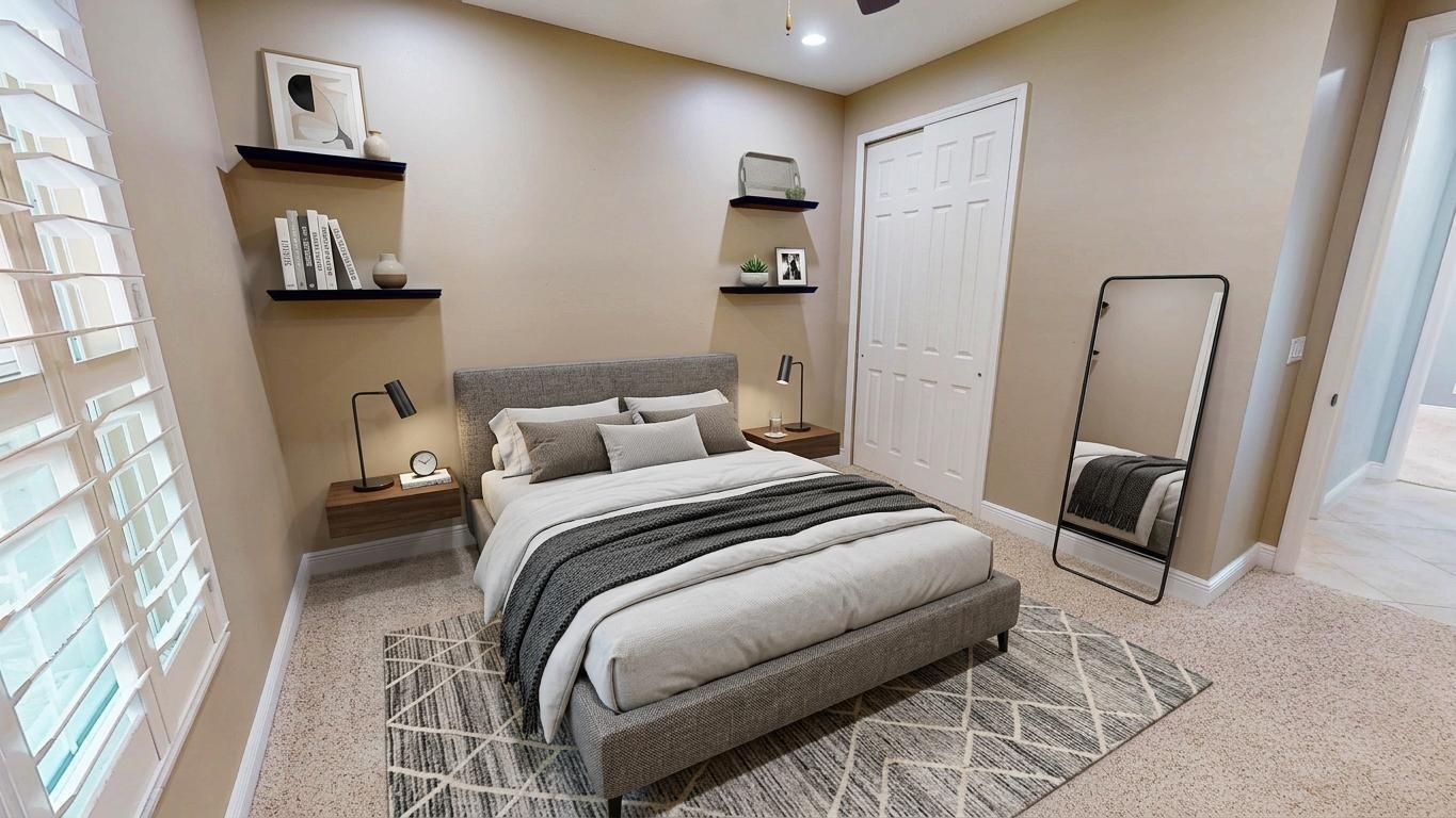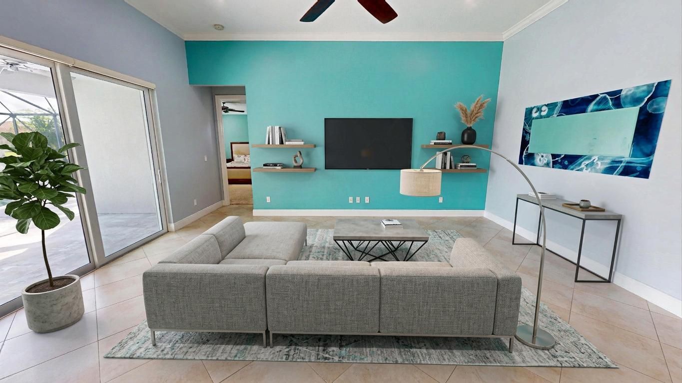 Stunning 4-bedroom, 3-bath home with den and a resort-style pool overlooking a breathtaking long lake view. This meticulously upgraded residence offers a blend of luxury and efficiency, featuring impact glass windows, a tile roof, whole-house generator, solar panels, new A/C, tankless water heater, full house water filtration system, and newer washer/dryer—all designed for peace of mind and modern living. The heart of the home is a gourmet kitchen showcasing high-end countertops, premium cabinetry, top-of-the-line lighting and fans, and an open layout that flows seamlessly into the family room and dining area. Every main living space is framed by panoramic views of the screened lanai, sparkling pool with spa and water feature, travertine flooring, and the picture-perfect lake beyond. The oversized primary suite is a private retreat with plantation shutters, custom walk-in closets, his-and-her vanities, and an expansive walk-in shower. Bedrooms two and three are located near the front of the home with a shared bath perfectly positioned between them. The fourth bedroom is versatile, ideal for guests or a home office, with a nearby full bath featuring a sleek seamless glass shower door. Additional upgrades include Toto toilets throughout, designer finishes, and thoughtful details at every turn. From the stunning lake views to the impeccable upgrades, this home delivers luxury living at its finest.