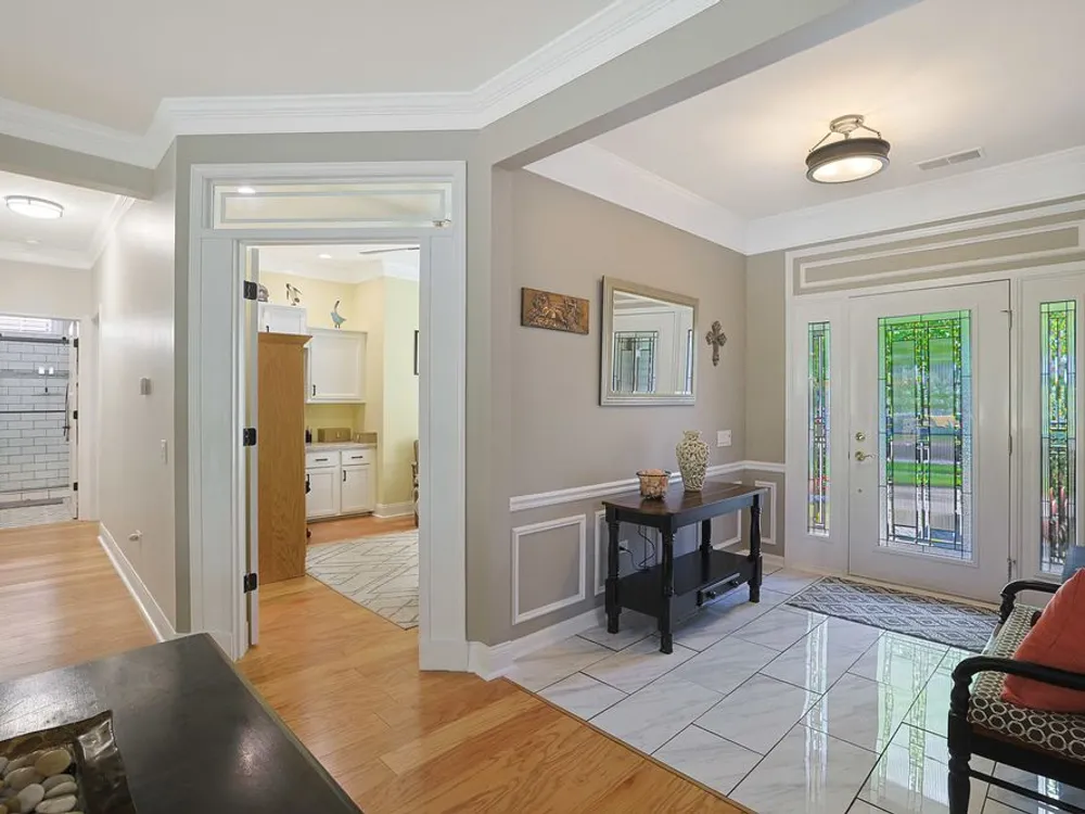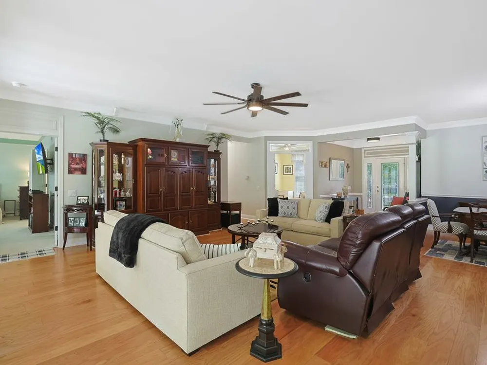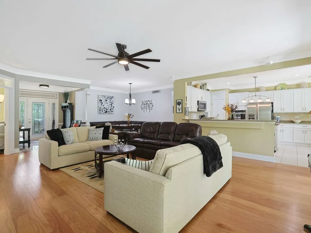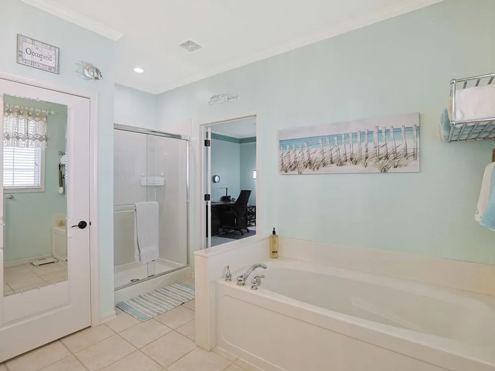 - Bedroom on Main Level, Full Bathroom, Walk-In Closet(s), High Ceilings, Open Floorplan, Den, Entrance Foyer, Separate Shower, Dual Sinks, Garden Tub, Family/Dining Room
