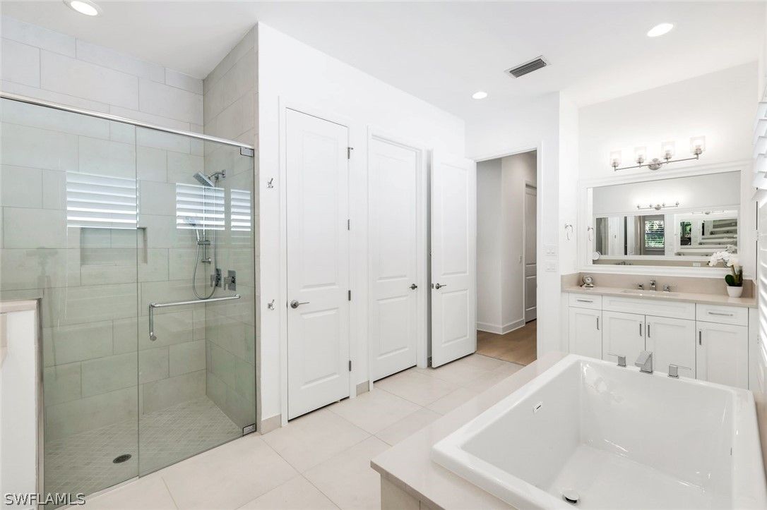 - Breakfast Bar, Bedroom on Main Level, Bathtub, Closet Cabinetry, Coffered Ceiling(s), Dual Sinks, Entrance Foyer, Eat-in Kitchen, French Door(s)/Atrium Door(s), Kitchen Island, Living/Dining Room, Multiple Shower Heads, Main Level Primary, Pantry, Sitting Area In Primary Bedroom, Separate Shower, Cable TV, Walk-In Closet(s), Window Treatments, High Speed Internet, Instant Hot Water