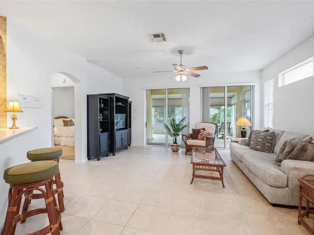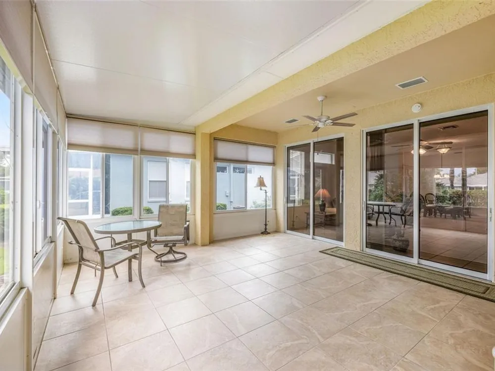 Stop your search—this home truly has it all for your Florida dream retirement! Located in the highly sought-after 55+ gated community of Kings Point in Sun City Center, this end-unit Kingston floor plan is perfectly situated on a quiet cul-de-sac in Huntington Greens. This villa offers spacious, open-concept living with 2 bedrooms, 2 full baths, and an oversized Florida room. The Florida room alone spans 288 sq. ft., featuring custom shades and its own energy-efficient mini AC system. With sweeping views of the meticulously maintained landscaping and no backyard neighbors, you’ll enjoy peace, privacy, and year-round comfort. Inside, the open living room, dining room, and kitchen create an inviting flow, perfect for entertaining or relaxing. If you don’t need a formal dining room, that space can easily serve as a home office. Additional highlights include a kitchen equipped with breakfast bar, 42” upper cabinets and gas range, an indoor laundry and a two-car garage—offering plenty of storage for both your car and golf cart. Kings Point offers the ultimate resort-style living, boasting endless activities and amenities. Two clubhouses—each with a restaurant, indoor & outdoor pool, and fitness center, dozens of clubs - from trivia and karaoke to pickleball, tennis, and lawn bowling and a vibrant social calendar just to name a few. And when you’re ready to explore beyond the gates, you’re just a short drive to world-famous beaches, Tampa, St. Pete, and Clearwater.